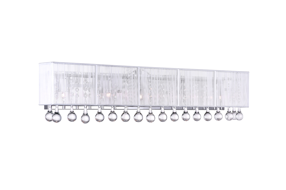 This breathtaking 5 Light Vanity Light with Chrome finish is a beautiful piece from our Water Drop Collection. With its sophisticated beauty and stunning details, it is sure to add the perfect touch to your décor.