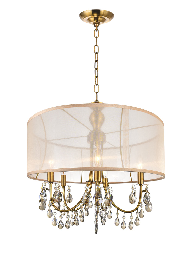 CWI LIGHTING 5061P22GB Halo 5 Light Drum Shade Chandelier with French Gold finish