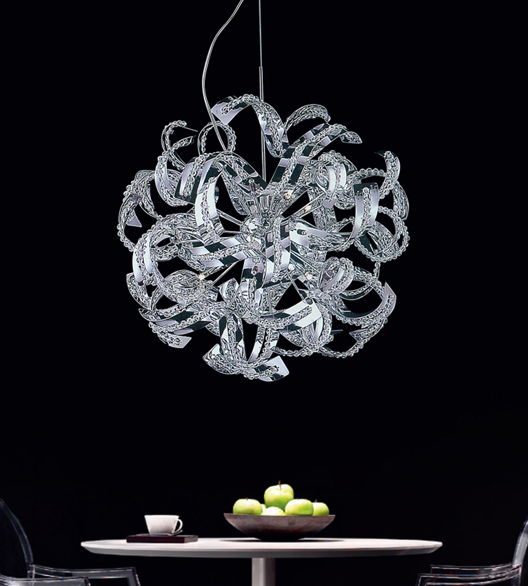 Give your interior decor game a fancy update with this Swivel 14-Light Chandelier. This modern light fixture makes it easy for you to get that luxe look on a budget given its large 22-inch size and polished chrome finish. Displaying a circular structure with glittering metal ribbons embellished with clear crystals, this light source assures you of an instant high-end makeover.