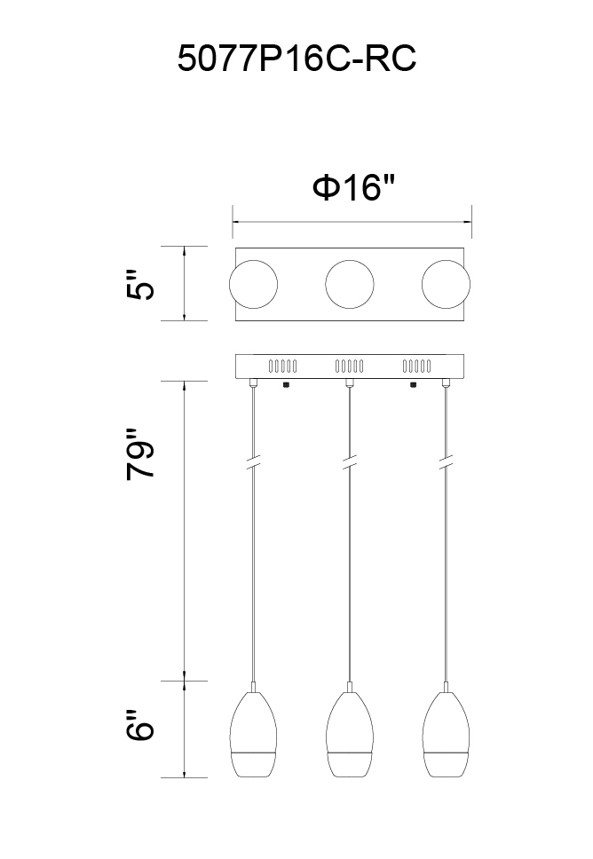 CWI LIGHTING 5077P16C-RC Perrier 3 Light Multi Light Pendant