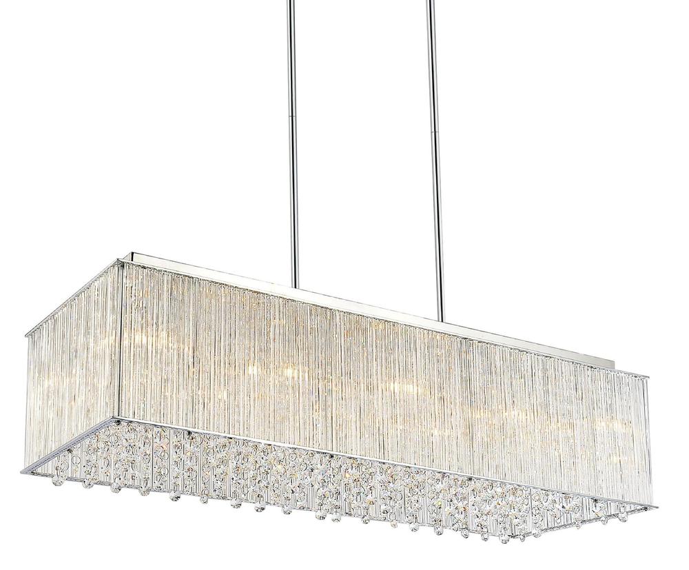The oversized Spring Morning 10-Light Chandelier is a glittering visual treat. It features a rectangular glass shade with chrome metal frame and multiple strands of clear crystal beads. You have this glam drum shade chandelier to count on when you want to add a dose of understated sophistication to your interiors.