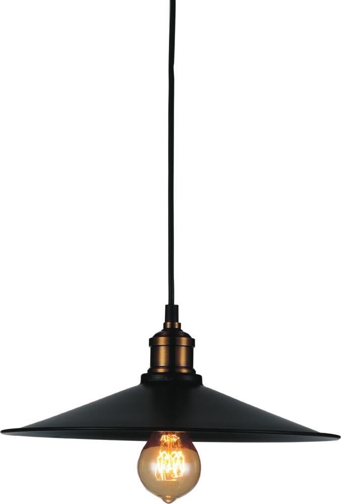 Bring a farmhouse charm to your living space with the Brave 13-inch Single Bulb Mini Pendant. This rustic styled lighting option has a conical shade with flared edges. It is in black finish with brass hardware accent. To complete the rustic-industrial appeal, an E26 Edison bulb is required. This lighting option is one that will make a big statement in a space without overpowering the room.