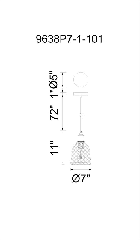 CWI LIGHTING 9638P7-1-101 Drea 1 Light Down Mini Pendant with Black finish