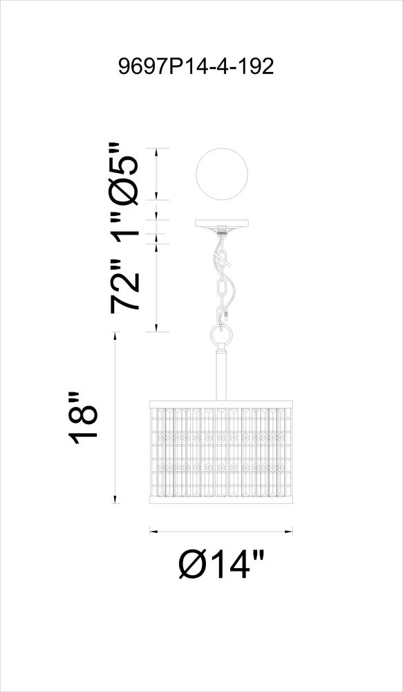 CWI LIGHTING 9697P14-4-192 Meghna 4 Light Up Chandelier with Brown finish