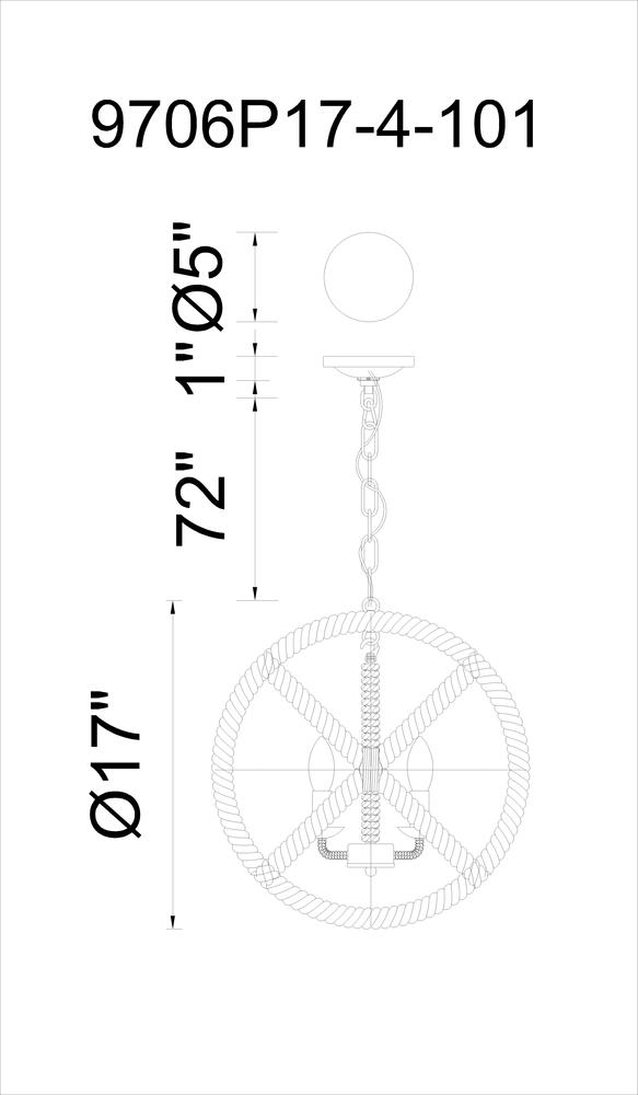 CWI LIGHTING 9706P17-4-101 Padma 4 Light Up Chandelier with Black finish