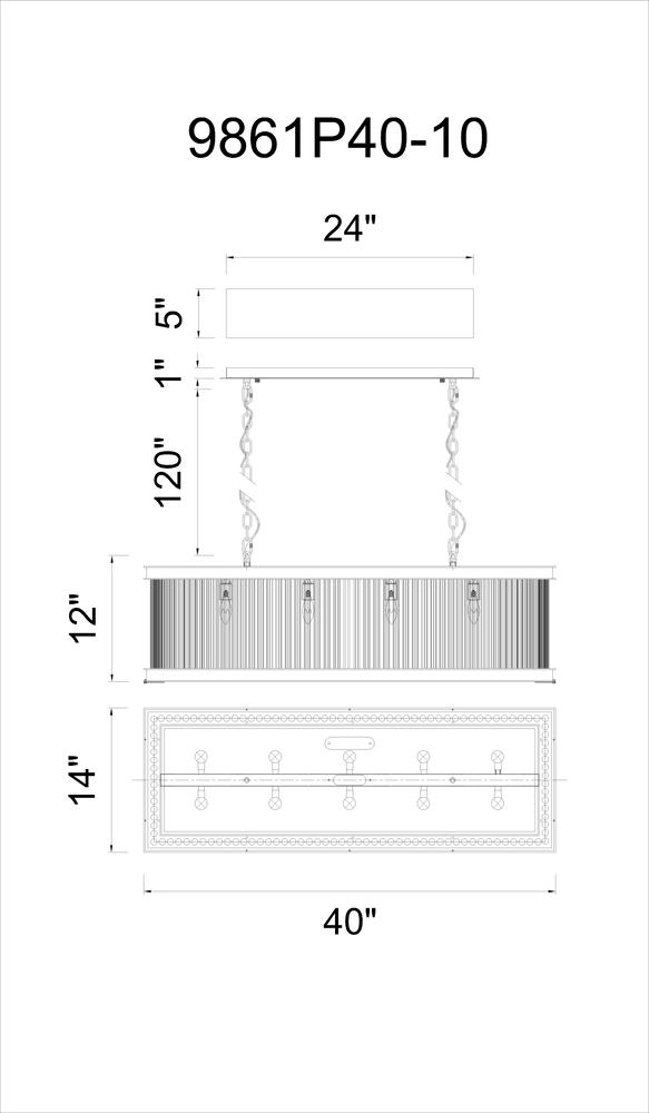 CWI LIGHTING 9861P40-10-101 Mira 10 Light Chandelier with Black finish