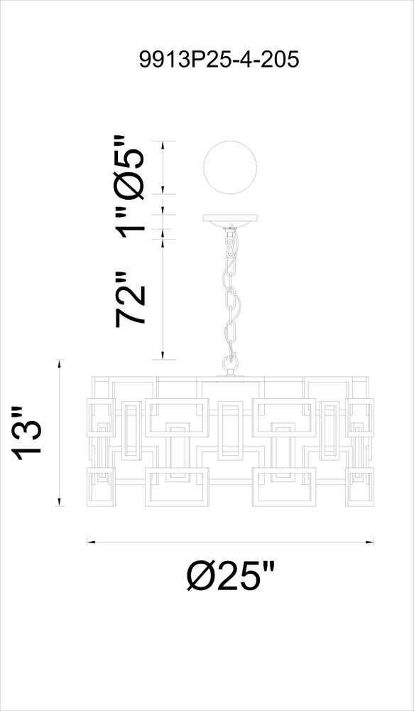 CWI LIGHTING 9913P25-4-205 Litani 4 Light Down Chandelier with Brown finish
