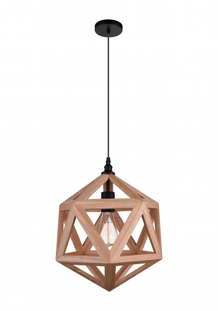 CWI LIGHTING 9945P13-1-101 Lante 1 Light Pendant with Black & Wood finish