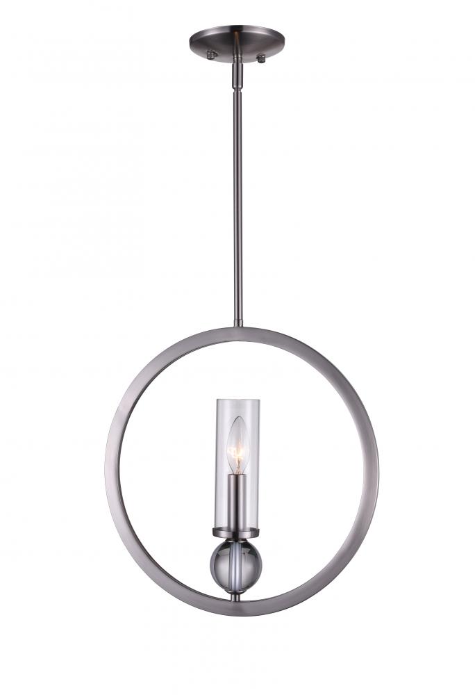 Give character to your minimalist space through this Elton 1-Light Chandelier. Styled with a clean design, this single-bulb pendant light features a 15-inch ring holding one candelabra bulb inside a cylindrical glass shade. The satin nickel finish exhibits that retro-streamlined look that will complement the vintage-y decor in a modern rustic space.