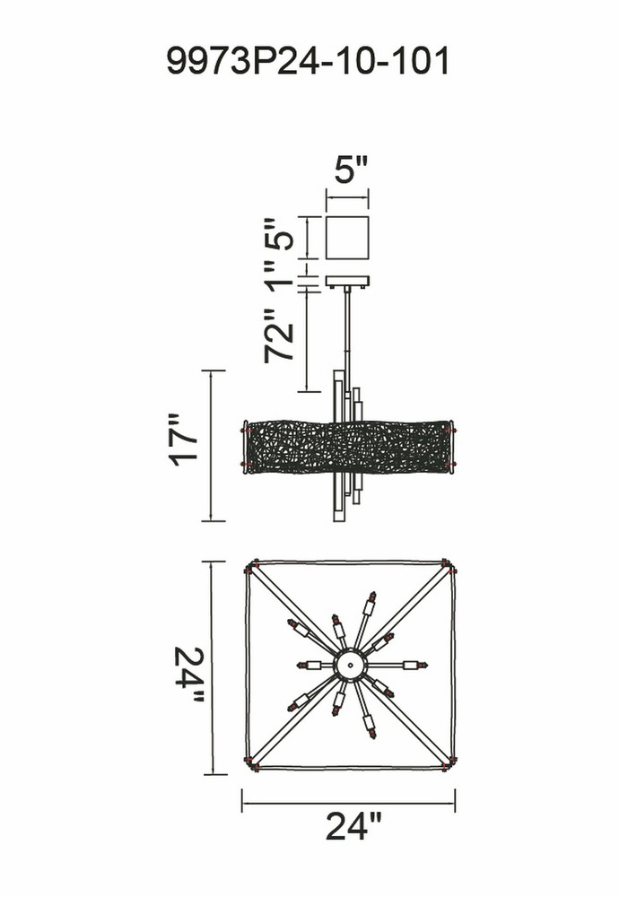 CWI LIGHTING 9973P24-10-101 Assunta 10 Light Chandelier with Black Finish