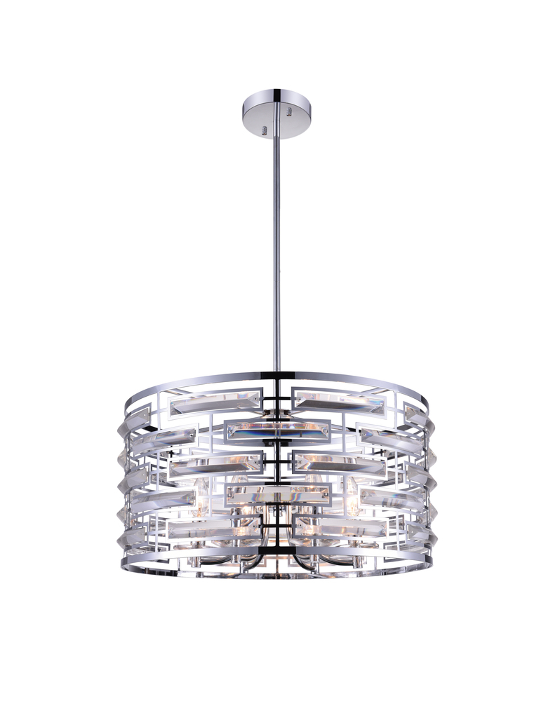This breathtaking 6 Light Drum Shade Chandelier with Chrome finish is a beautiful piece from our Petia Collection. With its sophisticated beauty and stunning details, it is sure to add the perfect touch to your décor.
