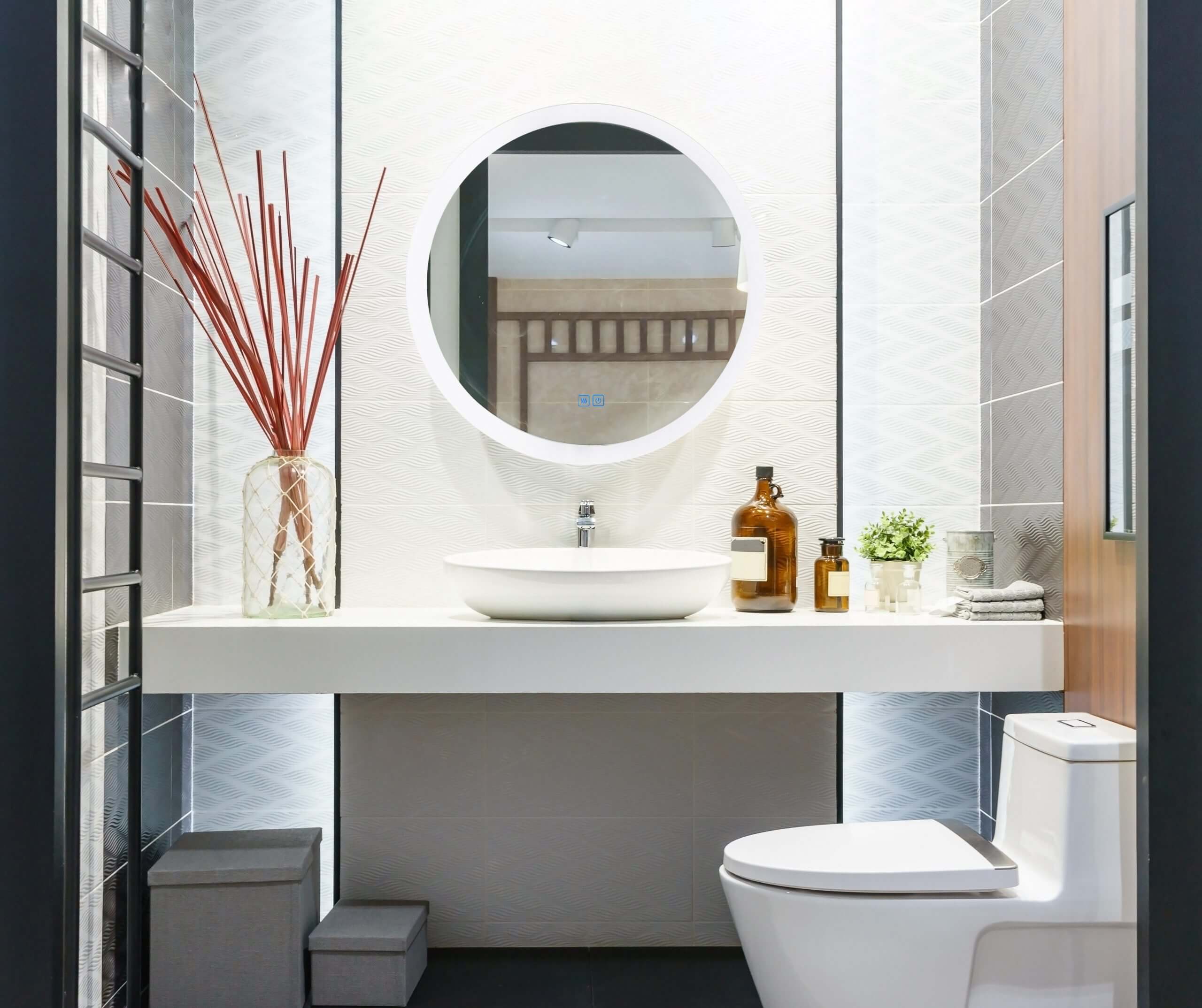 Revamp your bathroom with ease just by replacing the mirror. Install the Armanno LED Round Mirror to give your vanity area a modern makeover. This frameless mirror has an etched matte white border perfect for adding refinement to your bathroom’s style. It also features a touch sensor switch so it only takes a tap on the mirror itself to turn the LED lights on.