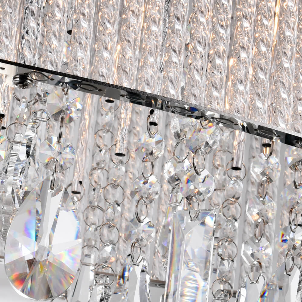 Transform a room in a flash with the addition of Benson 5-Light Oval Chandelier. Five bulbs are concealed inside an oval shade that’s made up of textured twisted crystal tubes. Dangling from the inside are faceted clear crystals that catch and diffuse light for radiant illumination. Whether lit or not, this large glam chandelier makes for a sparkling display.