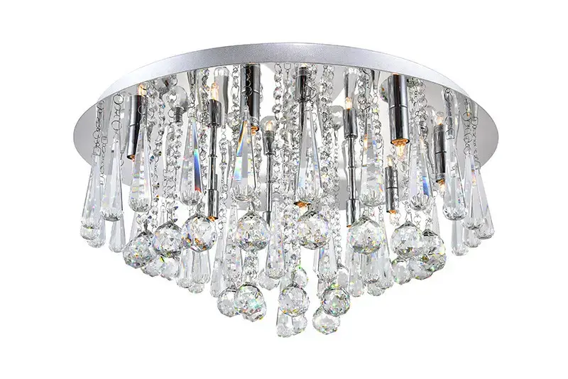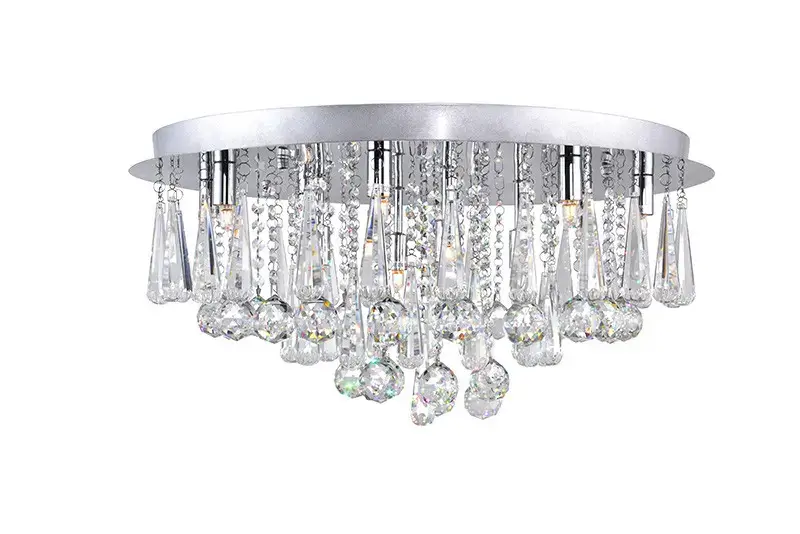Give your sitting area a more glamorous feel with the Brianna 12-Light Round Flush Mount. Designed with dangling crystals dropping from a round canopy in chrome, this light source enables you to bring dimension to your ceiling. The glittering glow this light fixture delivers can also trick the eye into making a small space appear bigger. This lighting option will also work well in different areas in your home including the bedroom, dining room, or even in your spacious walk-in closet.
