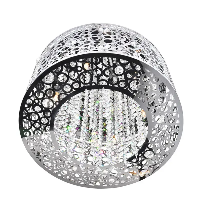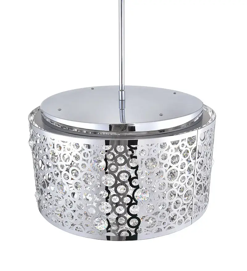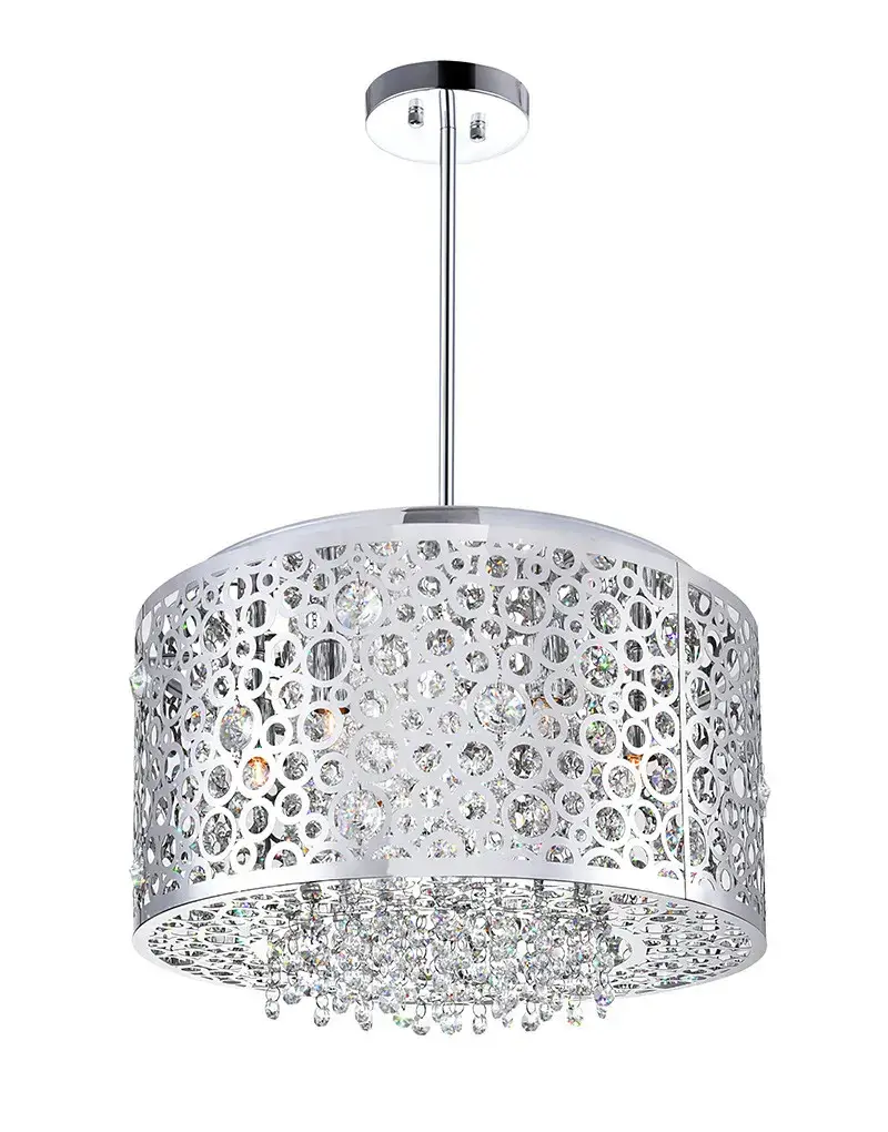The Bubbles 6-Light Chandelier is set to add polished elegance to your space. The metallic finish complements the bubble theme showcased by the cut-out pattern on the circular drum shade and the dangling strands of tiny crystal balls. This 16-inch modern drum shade chandelier will give your dining room, living room, kitchen, or bedroom a contemporary chic look.