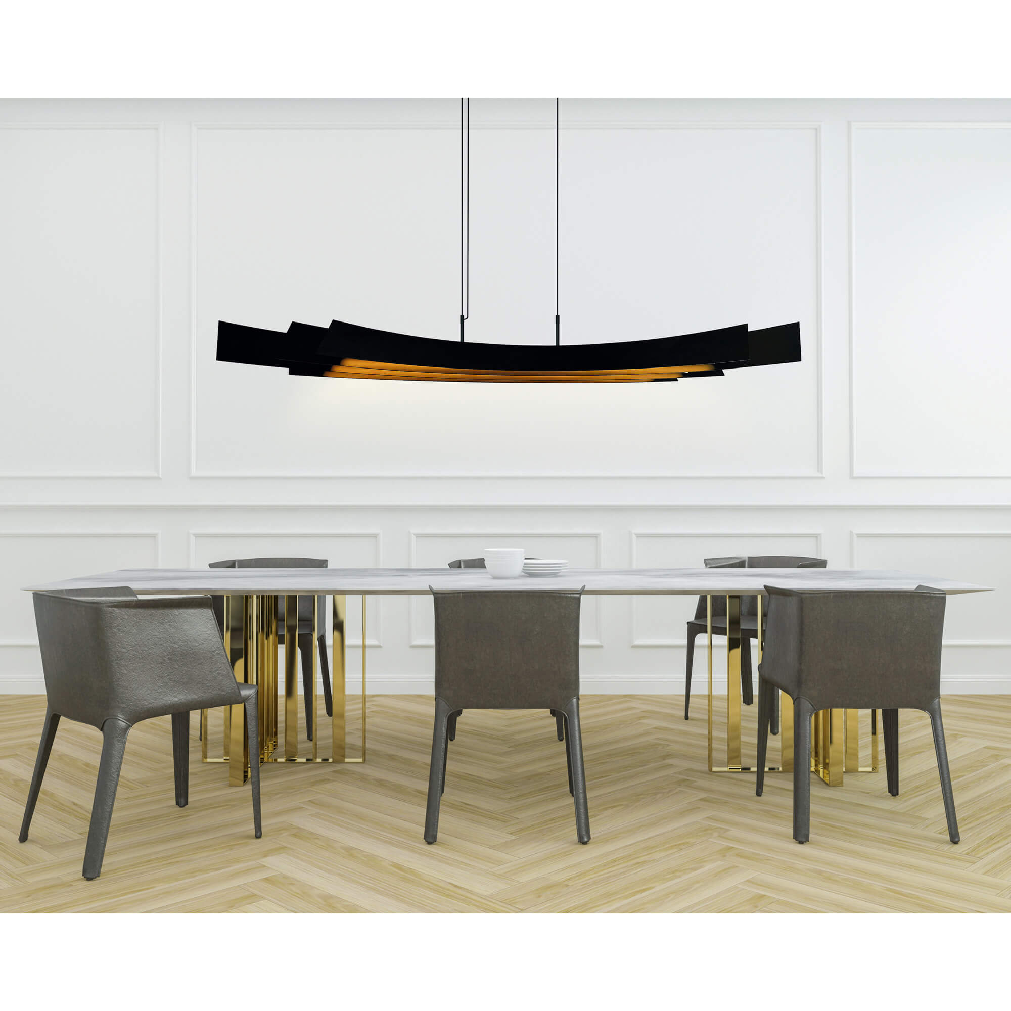 The Candora Integrated LED Chandelier is a contemporary fixture that seamlessly combines elongated elegance. Gracefully extended and exuding modern charm, this chandelier adds a unique touch to your space while providing an inviting glow in a beautiful Black finish. The adjustable height feature ensures a perfect fit for any room, and its versatile design makes it an ideal addition to various interior styles. Elevate your home’s ambiance with this piece, where captivating design meets illumination for a sophisticated lighting experience.