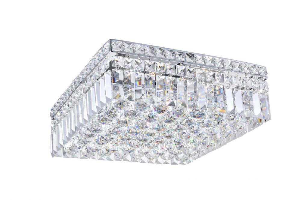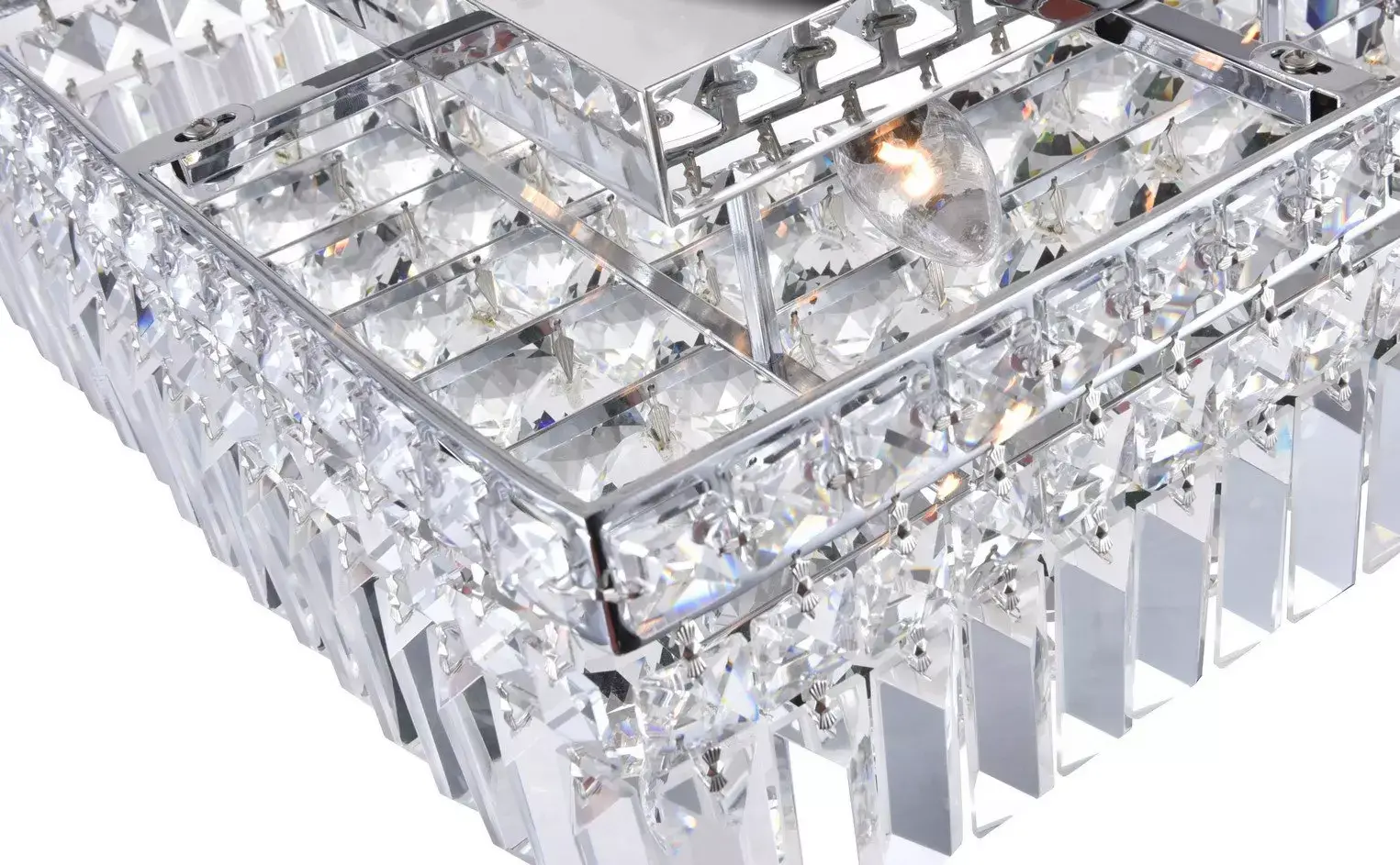 The perfect finishing touch to give your space an elegant yet edgy appeal. The Colosseum 5-Light Flush Mount in Square features a boxy shade comprised of glittering clear crystals. Concealed inside is a chrome-finished frame to hold five candelabra bulbs. Why stick with a fluorescent light stick when you can illuminate your space with the sharp-angled sophistication of this luminaire?