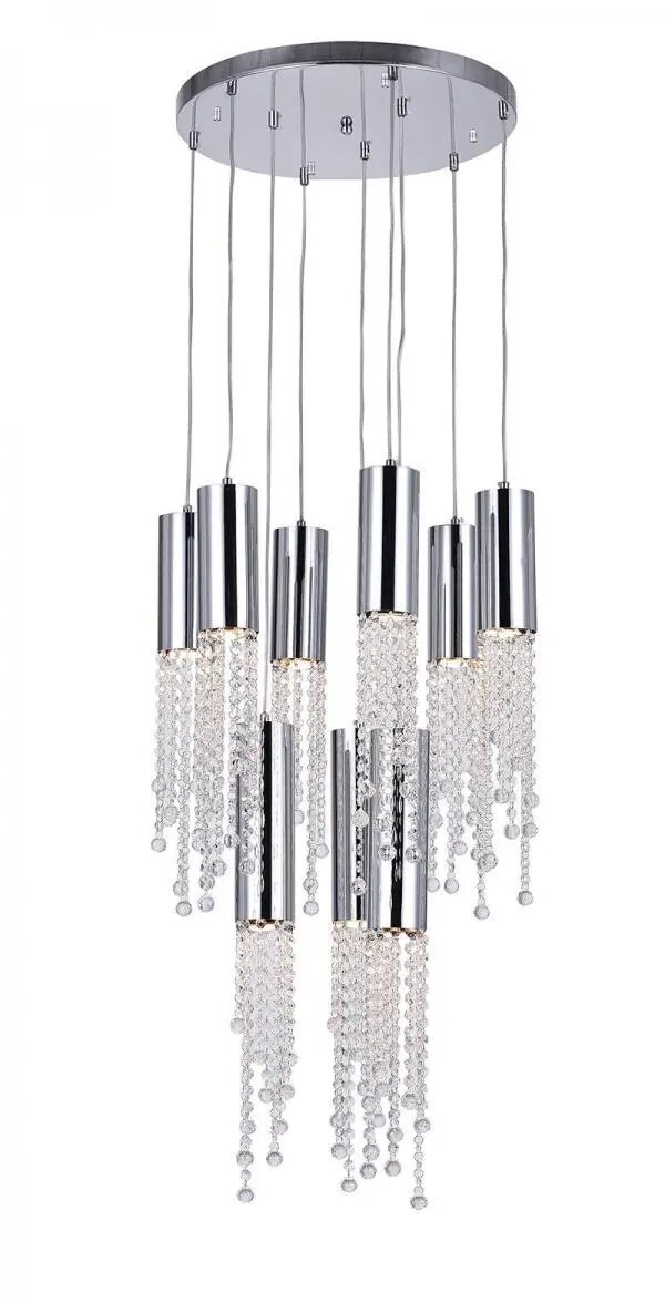 Sleek and slender, the Extended 9-Light Chandelier throws a powerful punch with its twinkling glow. Its elegant appearance and flattering illumination can surely give your space a luxurious transformation. A 20-inch canopy in polished chrome holds nine bulb-holding tubes with dangling crystal beads. Fancy but not overwhelmingly ornate, this multi-light pendant has that enduring appeal that you can count on when you want to glam up your space without a ton of work and expense.