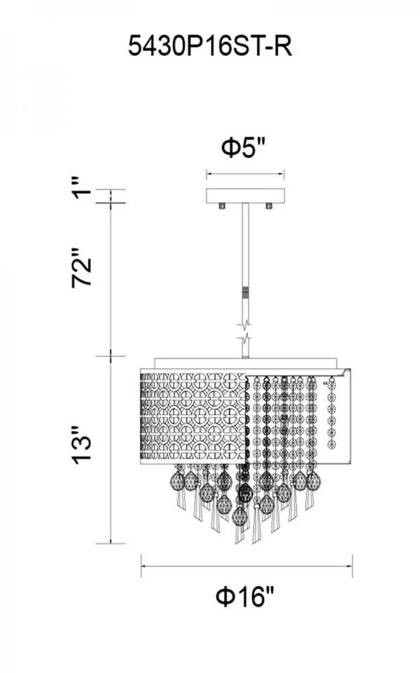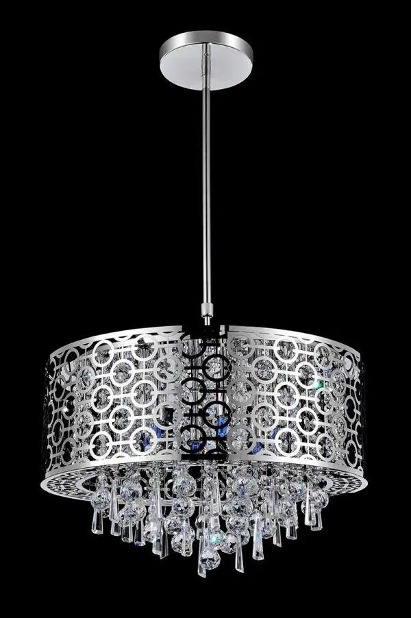 The Galant 5-Light Chandelier exudes class and style with its laser-cut drum shade finished in chrome and its dangling strands of clear crystals. This drum shade chandelier measures 16 inches in diameter and is the perfect size to illuminate a medium-sized dining area, living room, or bedroom. Expect the down lighting and the crystal embellishment to cast a glow of light that’s elegant and romantic.