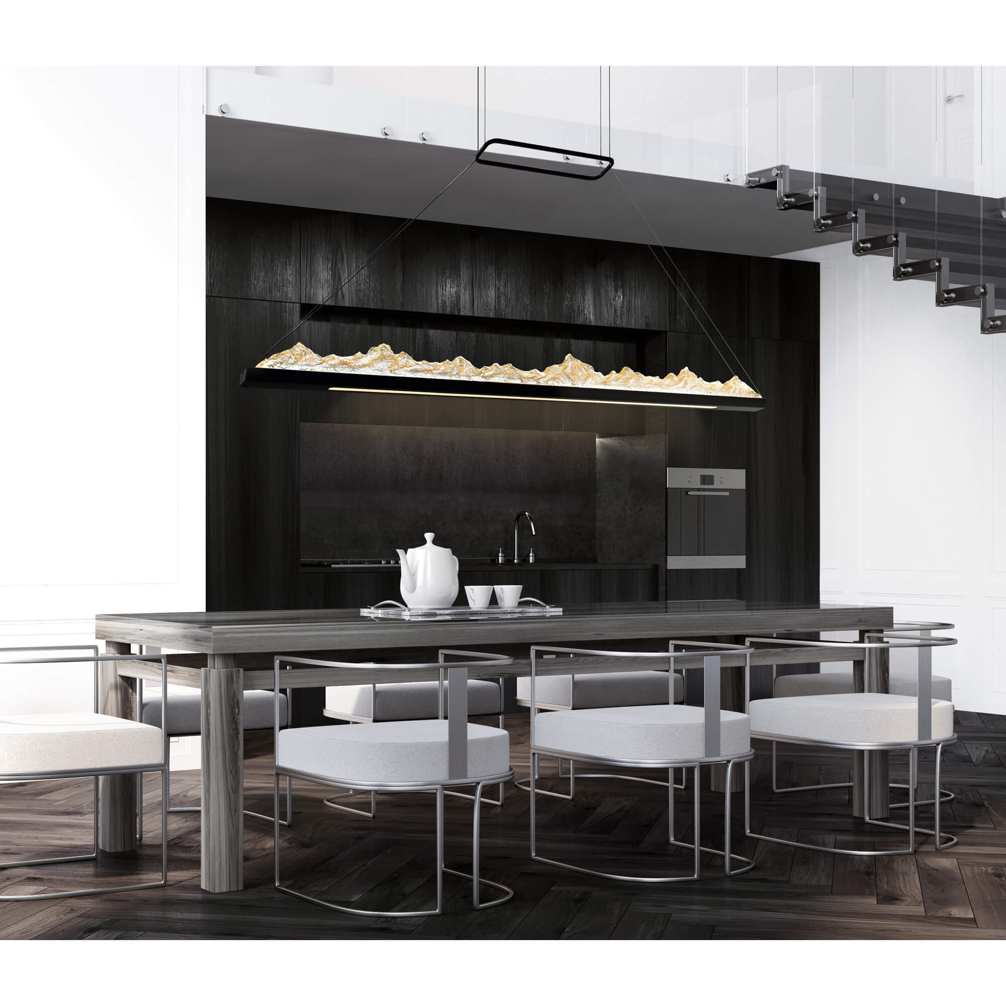Experience the grandeur of the Himalayas Integrated LED Chandelier. A stunning lighting fixture that channels the serene beauty of the mountains into your home. Impeccably crafted with intricate detail, this chandelier captures the essence of the Himalayan landscape, bringing a touch of natural inspiration to your space in a beautiful Black finish. The cascading LED light emulate the tranquil flow of mountain streams, creating a harmonious and inviting ambiance.