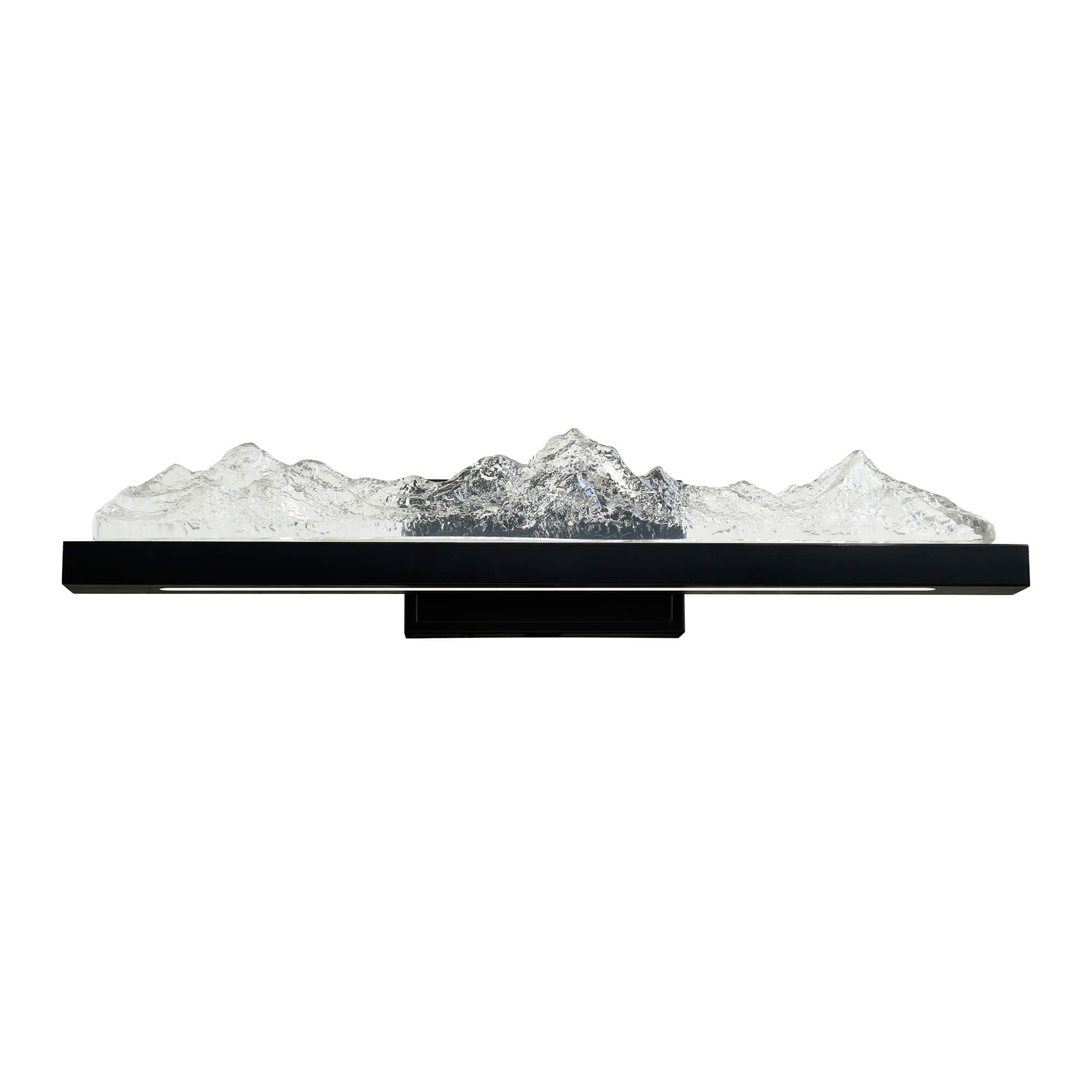 Experience the grandeur of the Himalayas Integrated LED Vanity Light. A stunning lighting fixture that channels the serene beauty of the mountains into your bathroom . Impeccably crafted with intricate detail, this chandelier captures the essence of the Himalayan landscape, bringing a touch of natural inspiration to your space in a beautiful Black finish. The cascading LED light emulate the tranquil flow of mountain streams, creating a harmonious and inviting ambiance.