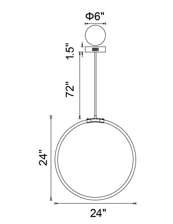Don’t underestimate the refined simplicity of this piece. This 1-Light Ring Chandelier from our Hoops Collection features a black downrod holding a single LED ring measuring 24 inches in diameter. This modern hoop pendant light requires just one LED bulb to update the look of a dull corner, a hallway, or a small to medium space. Expect maximum impact from this minimalist light fixture.