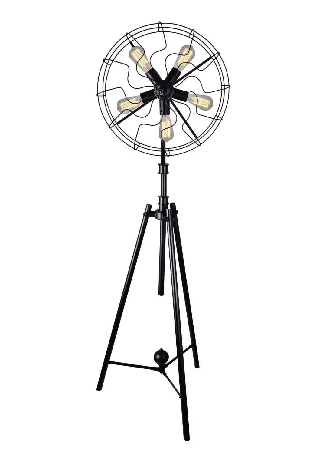 Part decor and part utility, the Pamela 5-Light Floor Lamp will easily take the spotlight in any space. This industrial fan floor lamp makes for an interesting interior design conversation piece. The tripod, metal fan frame, and repurposed look will bring a Machine-Age/Steampunk appeal to your home. Where the fan blades once were, five bulbs are now in place ready to provide ample illumination.