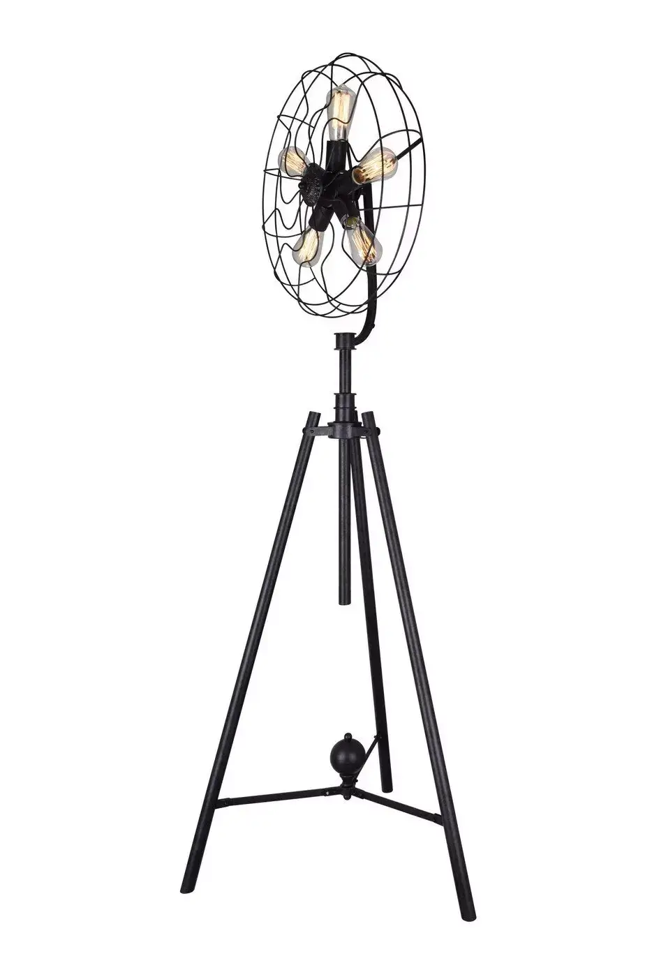 A playful, conceptual piece perfect for your character-rich space, the Pamela 5-Light Floor Lamp will attract eyes and start conversations. The “shade” is styled like the cage frame of a cooling fan. The bulbs are arranged fan blade style. A tripod stand holds the light source upright. Get this floor lamp, in black or rust finish, and spice up the look of your modern farmhouse, contemporary rustic, or urban industrial home.