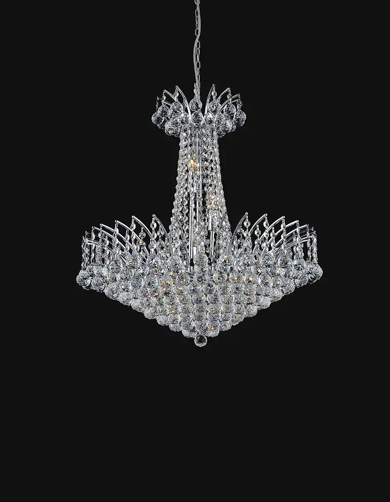 You don’t need a royal budget to make your home look posh. Replace your lighting with the Posh 22-Light Chandelier and see how a small change can make a big impact. This down chandelier has a chrome-finished metal frame adorned in style by round crystal beads. The style beautifully displays the artful combination of lines and curves. With this crystal chandelier’s high-class style and ritzy glow, your space will instantly look and feel more luxurious.