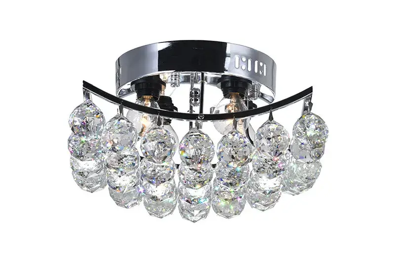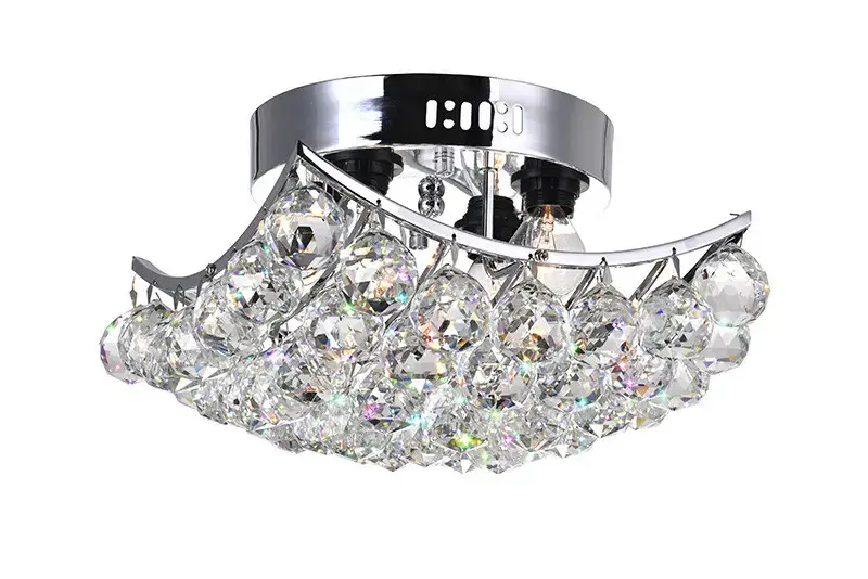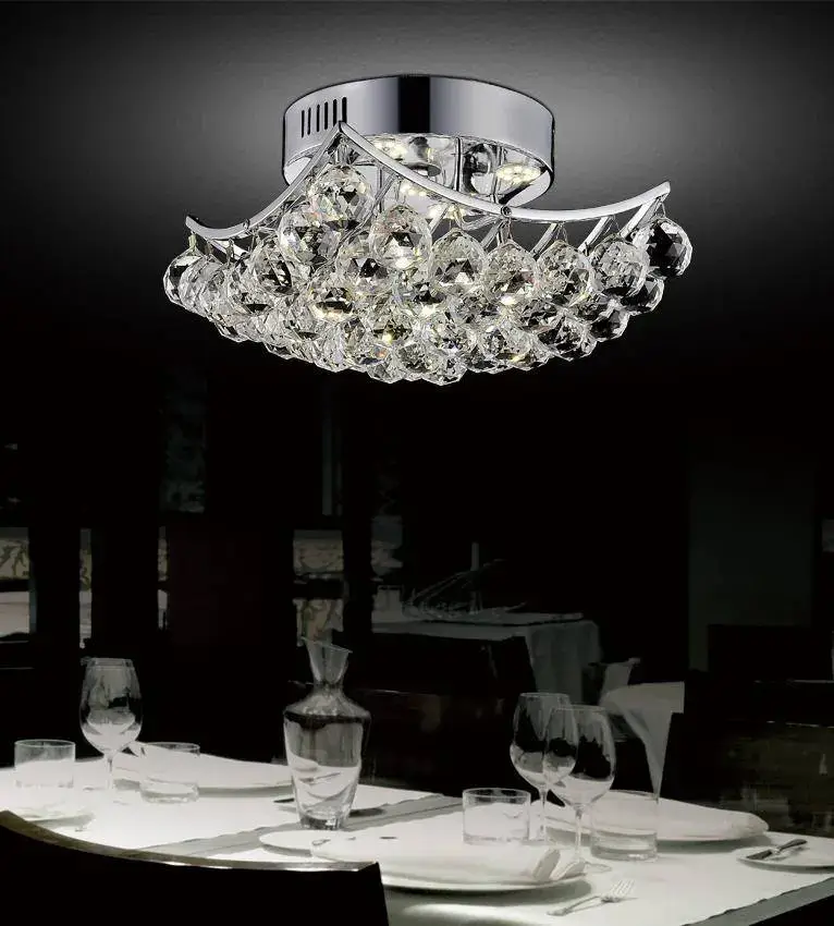 The Queen 4-Light Flush Mount has a distinct style that will bring a unique glow to your dining space. Mounted close to the ceiling, this chrome-finished light source with dangling balls of faceted crystals will deliver a luxurious light perfect for creating an upscale ambiance in your dining room. Get this if you are looking for a light source with an undeniable regal appeal.