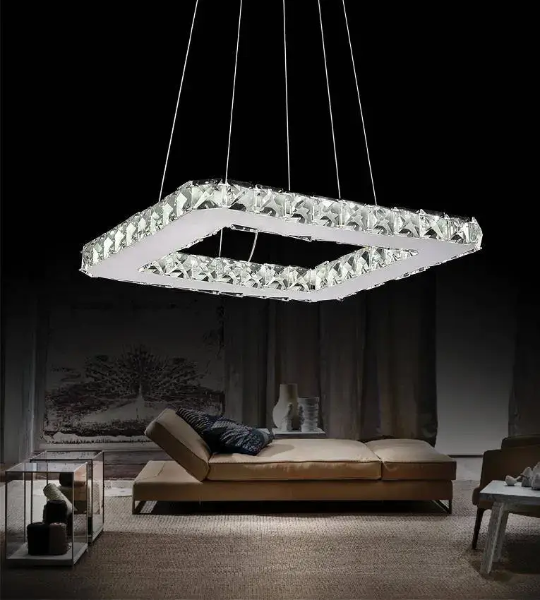 Uplift and enrich the look of your living space by installing the Ring 15-inch Square LED Chandelier. Designed with an unlikely shape for a light fixture, this glittering light source will provide your space with a sparkling edge. The shape represents order and is perfect for bringing structure and sense of logic to a room.