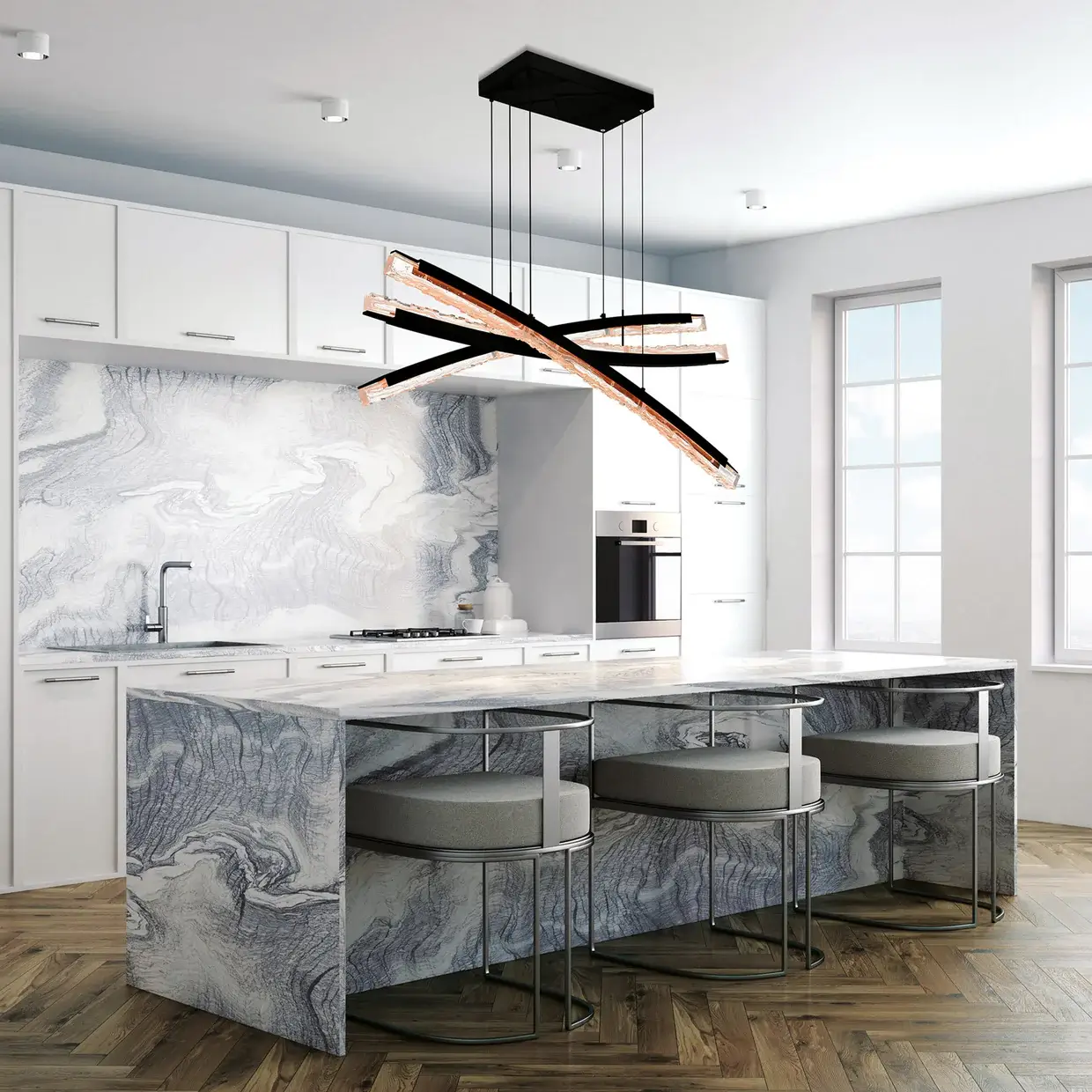 Bring sculptural elegance to your space with the Saber Integrated LED Black Chandelier. This striking fixture combines a sleek black finish with an asymmetrical silhouette and artisan-crafted, textured glass elements. Integrated LED lighting delivers a warm, energy-efficient glow while the handmade details add depth and character. Designed for modern and contemporary interiors, this chandelier offers both functional illumination and elevated style.