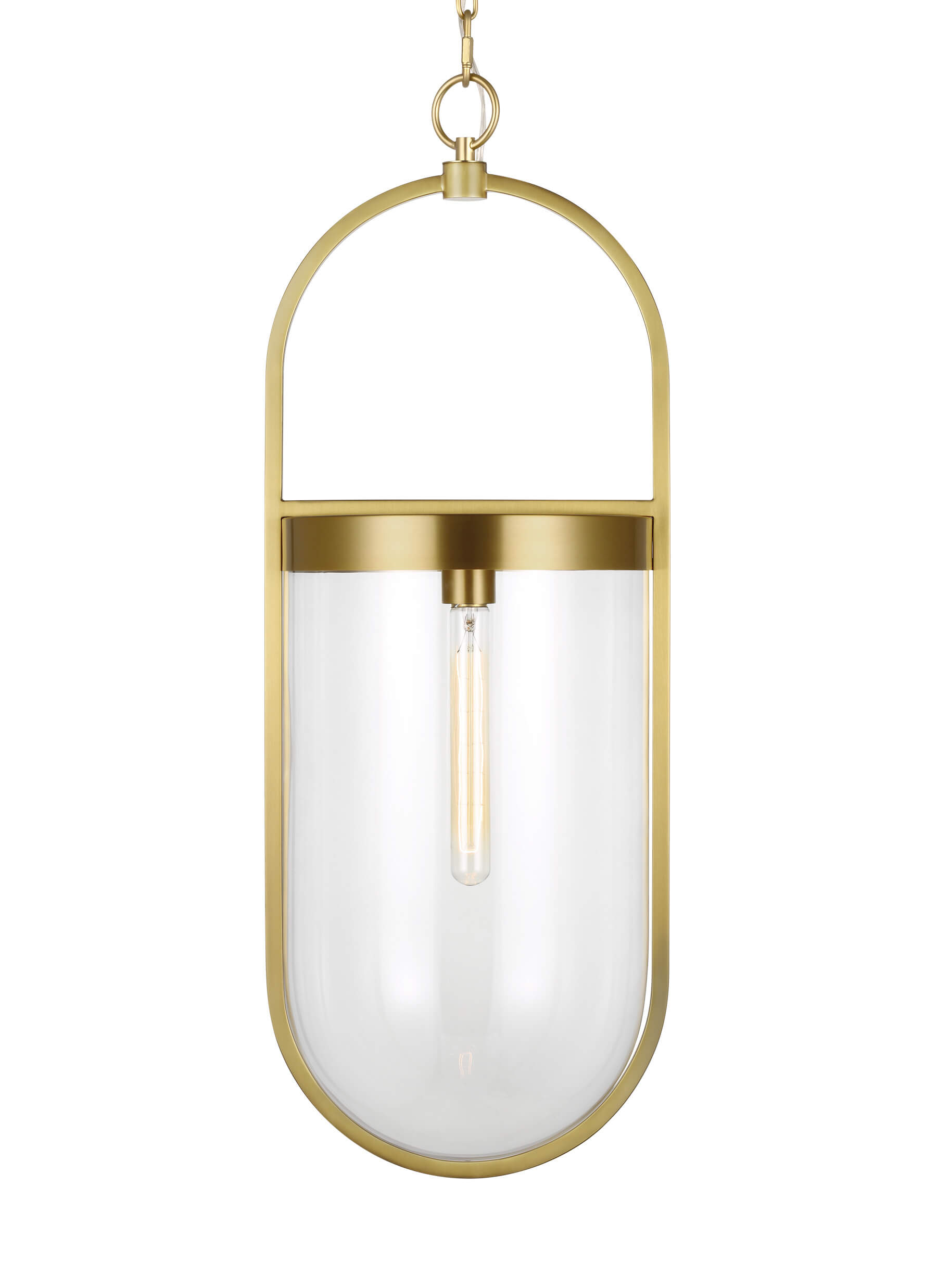 Simple cylindrical glass accented by large machined bolt hardware. Each fixture is designed to highlight the warm glow from filament tube bulb.