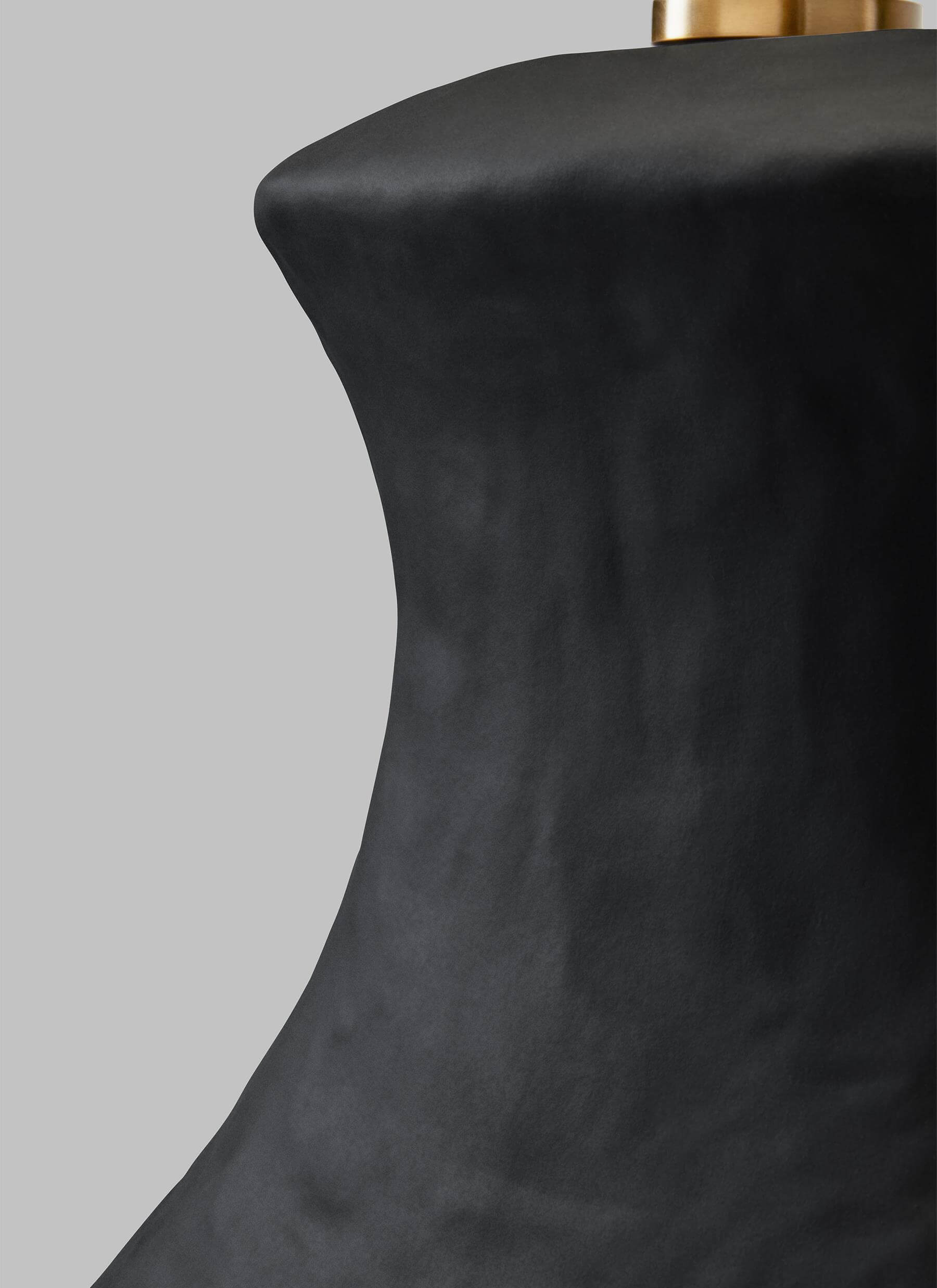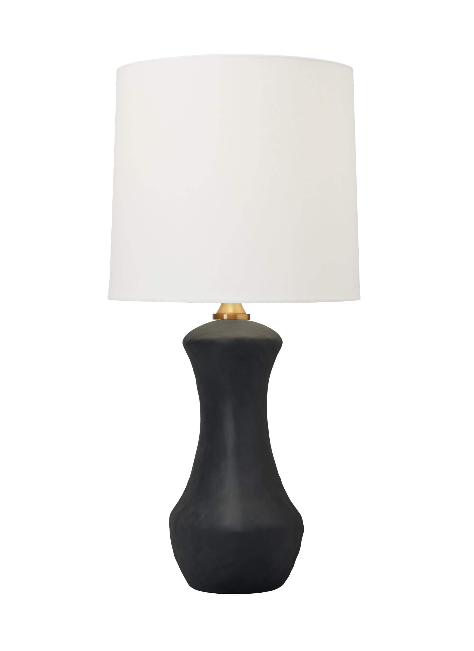 Crafted of ceramic with an organic form and matte glaze in an Artic or Coal finish. A burnished brass base and white linen shade balance this relaxed design.