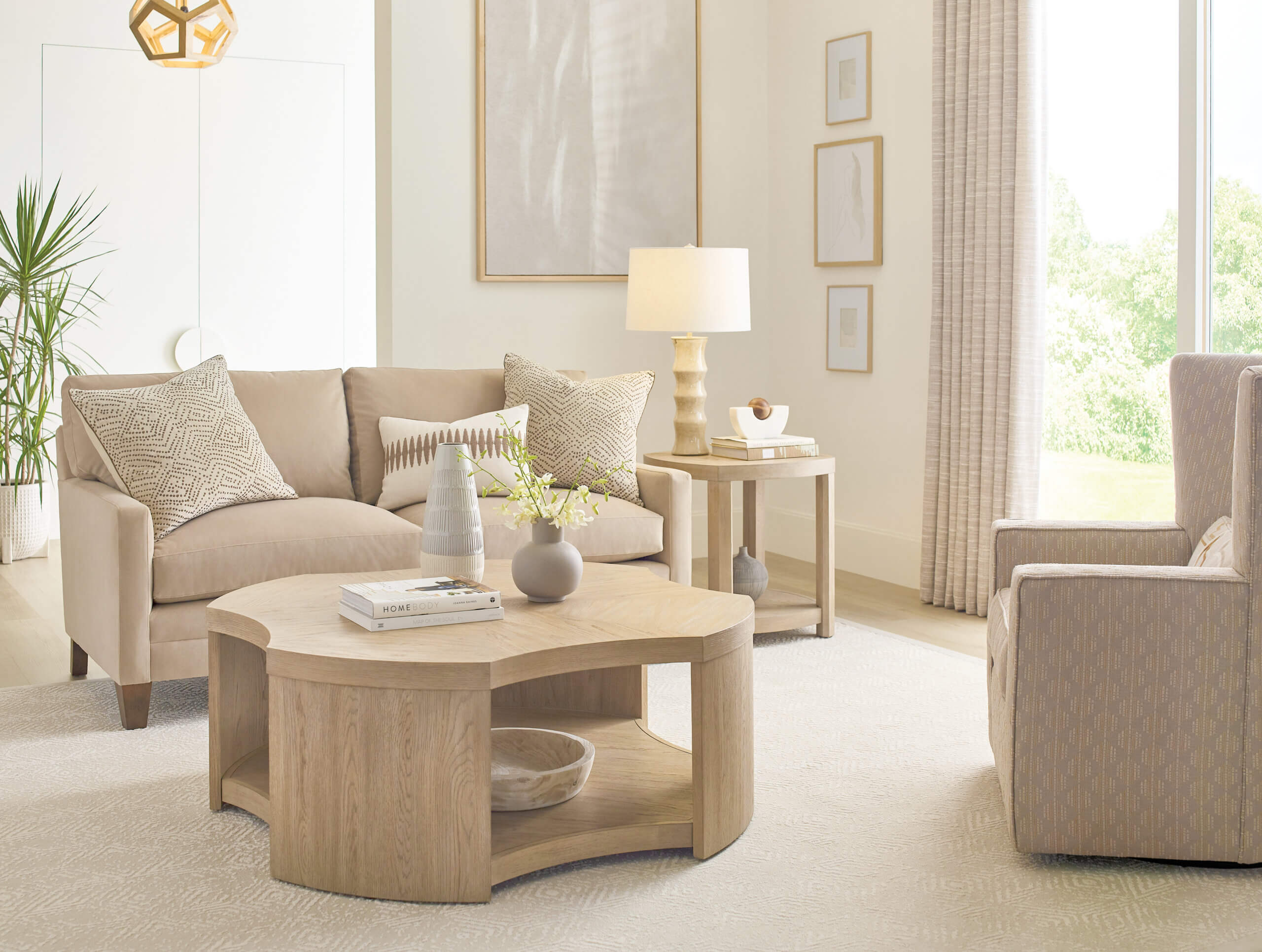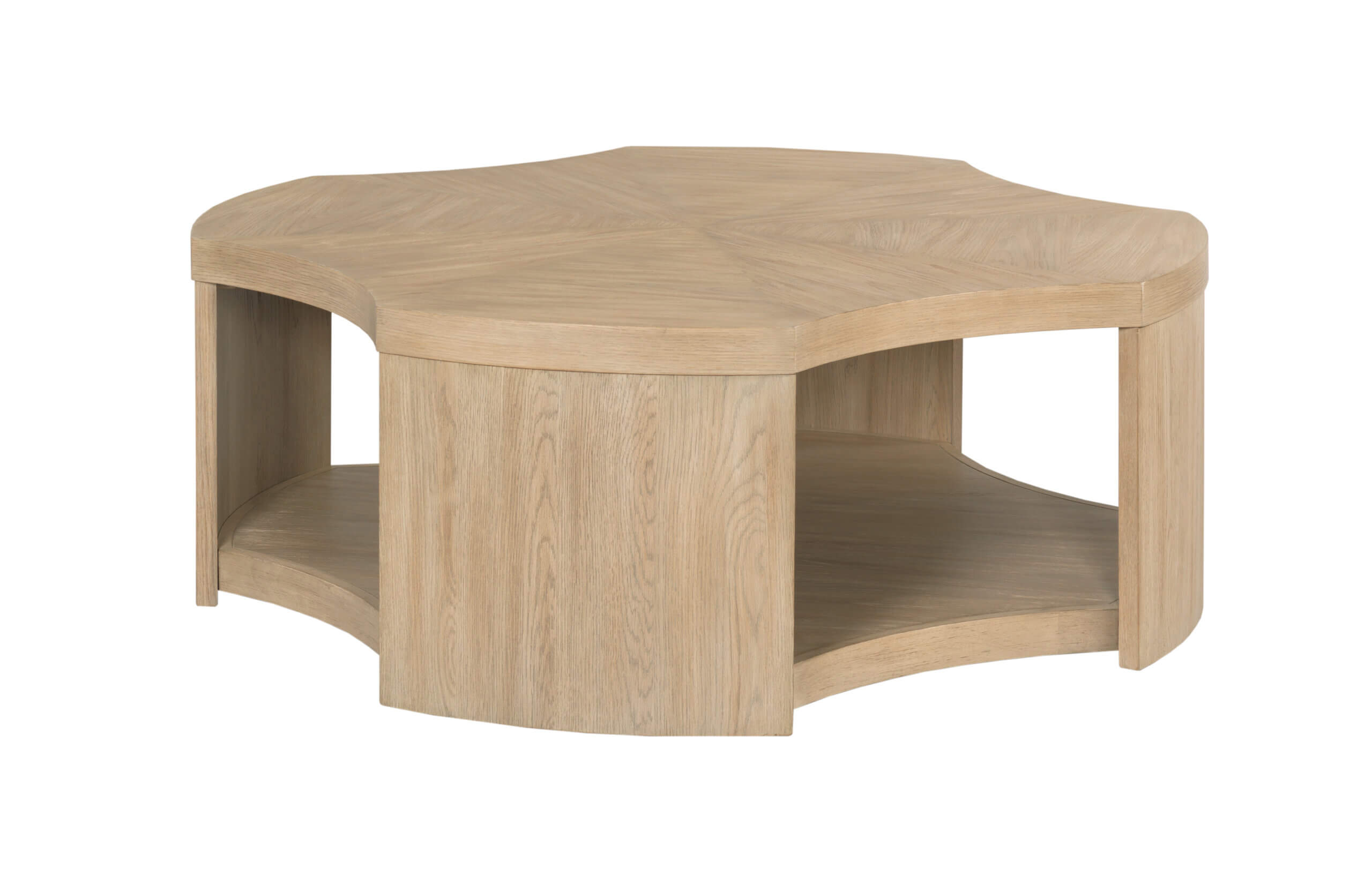 If a natural wood look is what you are looking for in a coffee table, then this is it. Beautifully designed, constructed of split heart white oak veneers and select hardwood, equipped with one shelf and casters for easy mobility.