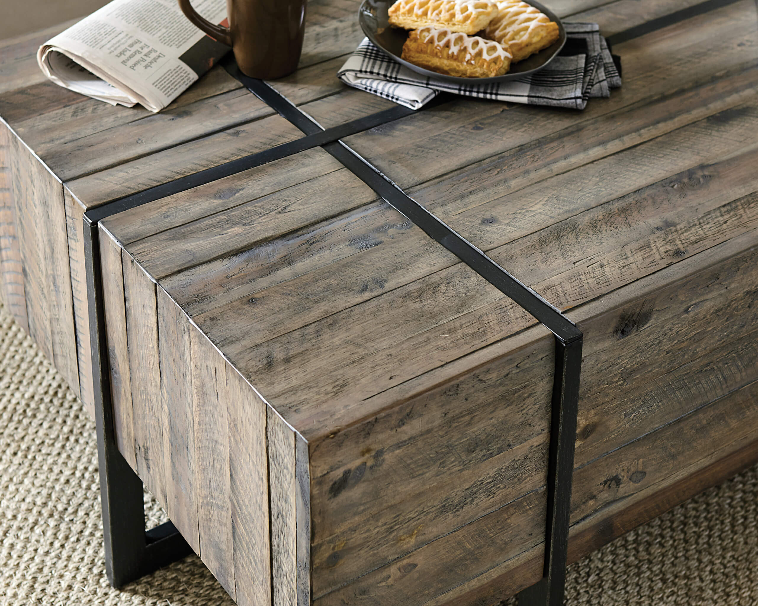 Modern Timber fuses custom geometric metal bases with rough solid acacia