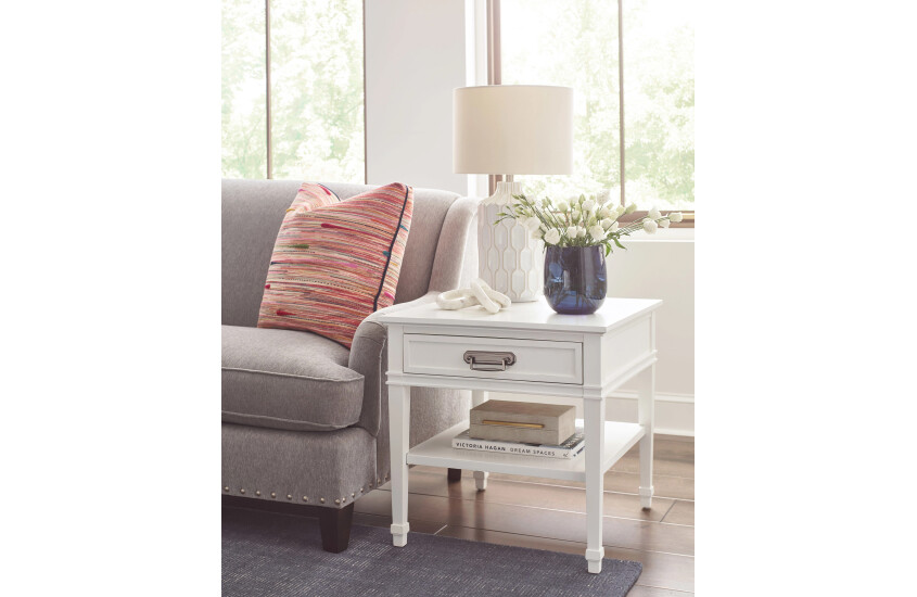 Complete your unique design with this rectangular end table that is traditional yet modern. It features one drawer, and