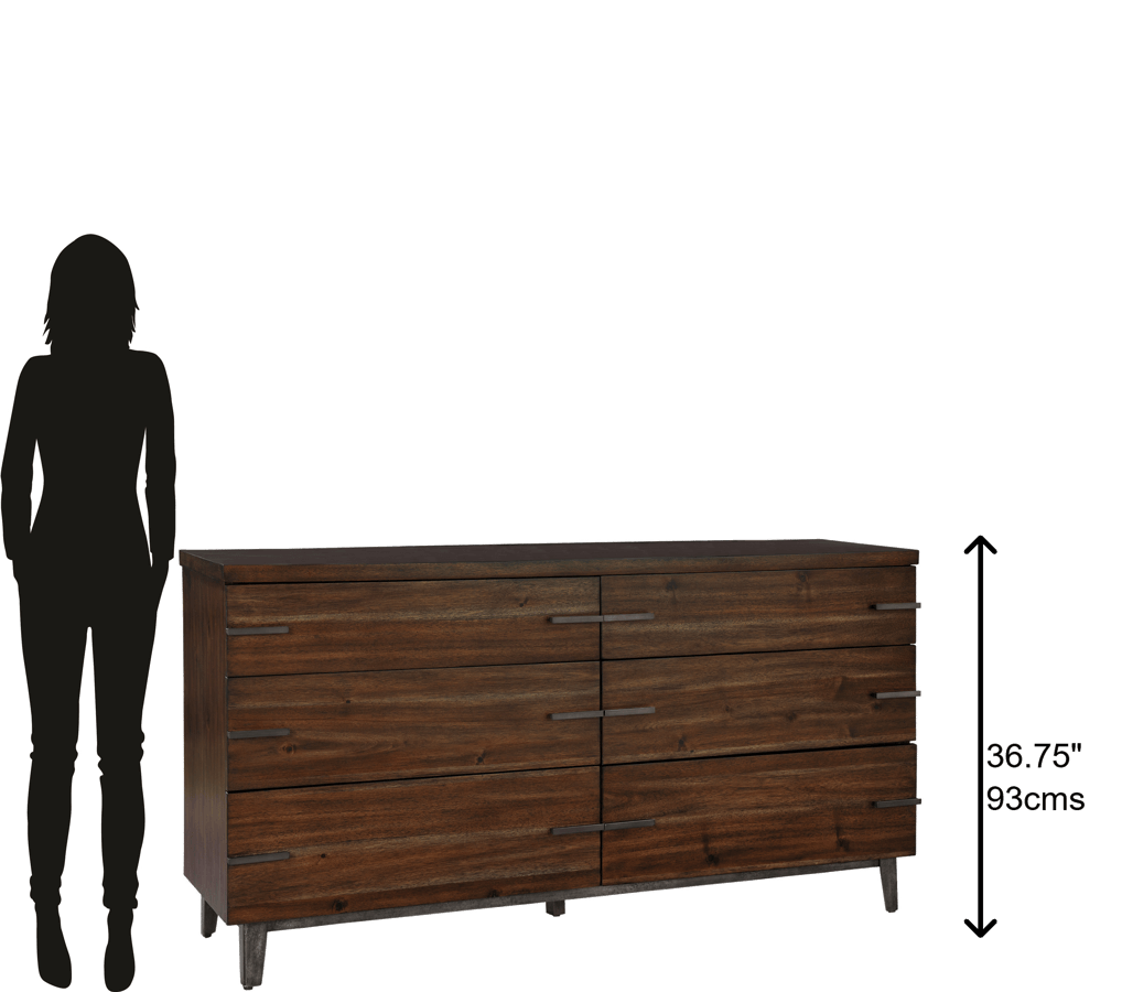 Dresser features a 1.5" slab top of acacia veneers and solids.