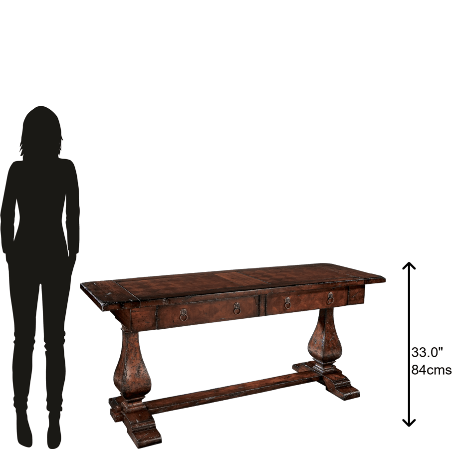 Diamond match Mahogany veneer on top surounded by solid Mahogany bands.