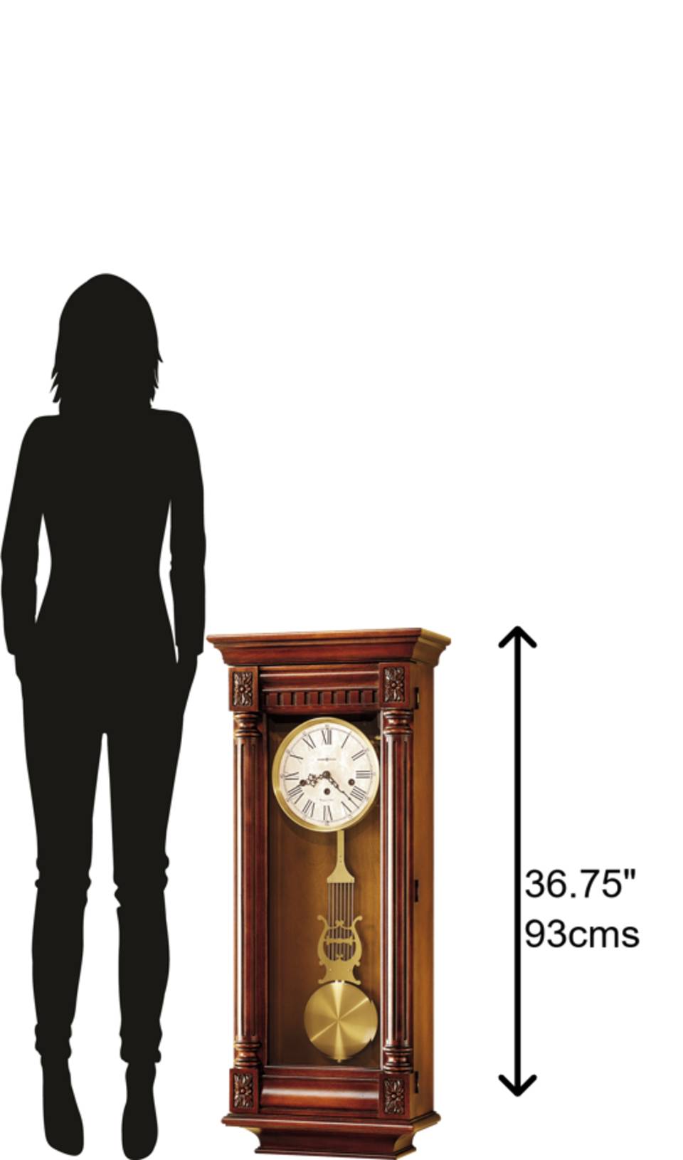 Warm Detailing: This masterfully designed traditional wall clock with pendulum stands out from every angle. There are four carved overlays accenting the base and pediment, along with a distinctive dentil molding over the dial. The dial itself bears an aged appearance and has a brushed, brass-finished bezel with an antique finish. The fluted columns lined along the sides of this chiming wall clock accent the beveled glass door, which opens to reveal a brushed, brass-finished pendulum boasting an antique look. There’s also a dual-ratchet winding arbor to ensure safe movement winding.