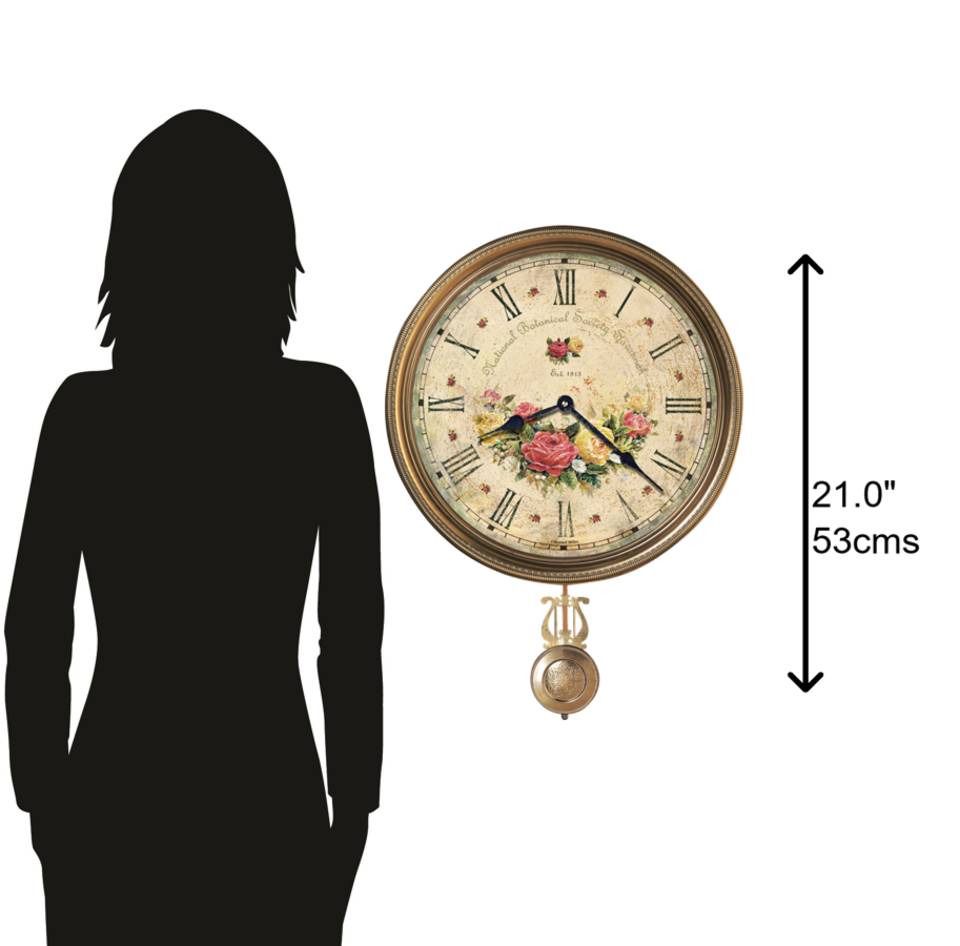 WALL CLOCK: The Savannah Botanical VII Wall Clock features a decorative antique-brass pendulum to hang under the vintage clock and compliment your home decor. The clock’s quartz movement makes a soft ticking noise without the use of chimes for a quieter environment.