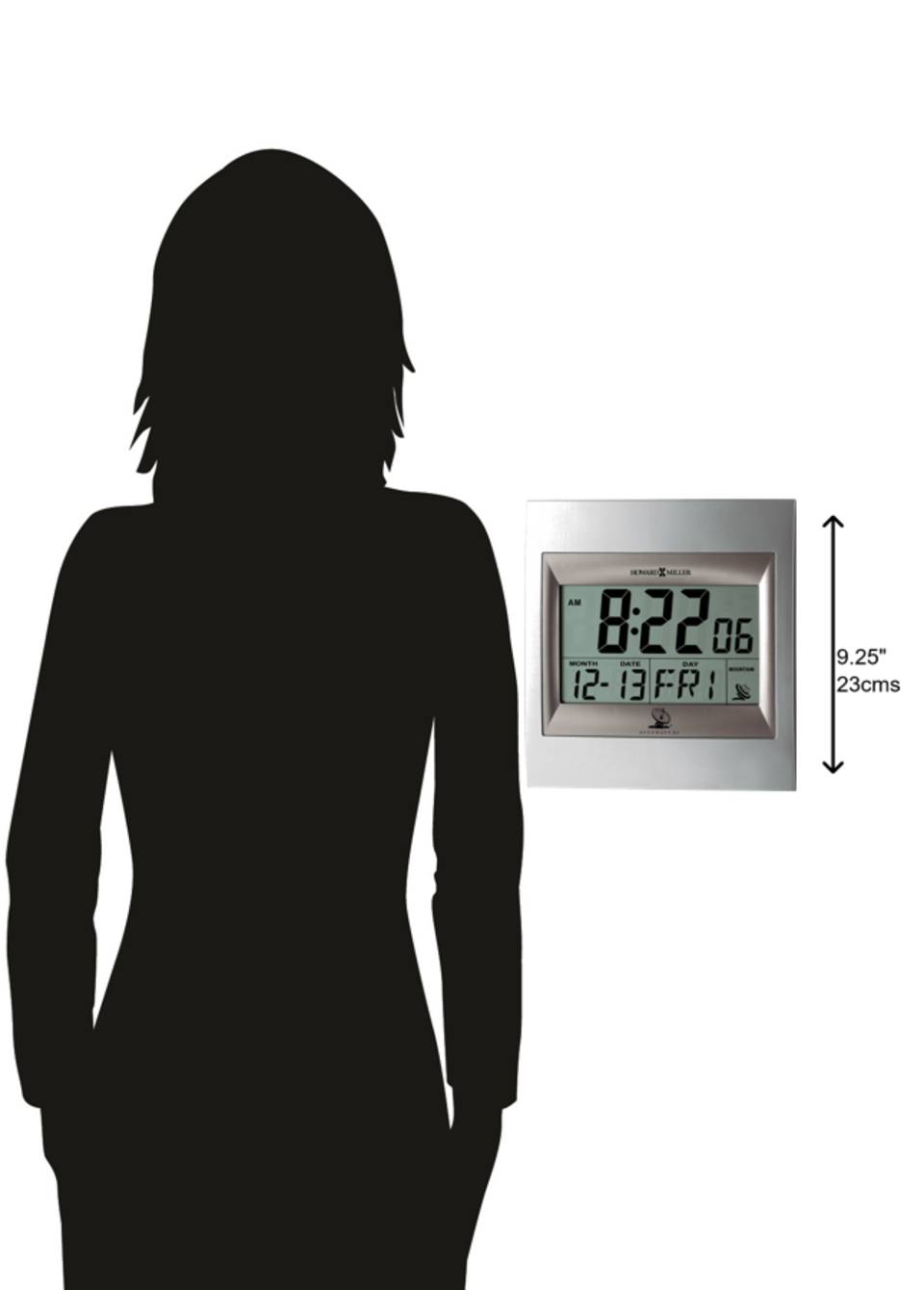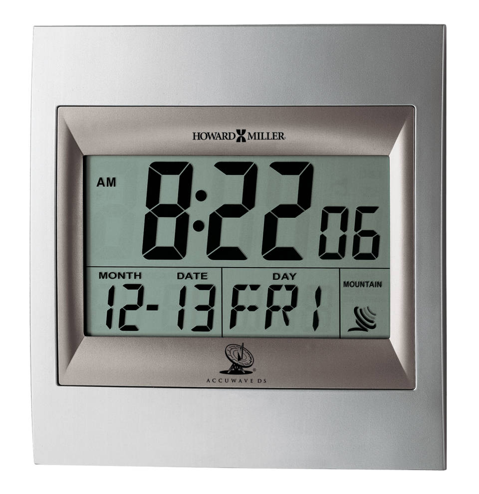 WALL CLOCK: This Techtime II Wall Clock features two-tone titanium and satin silver to compliment your home decor. It has a glass LCD display with large two inch numerals to view the time, day, month, and date. Select in a 12 or 24 (military) time format.
