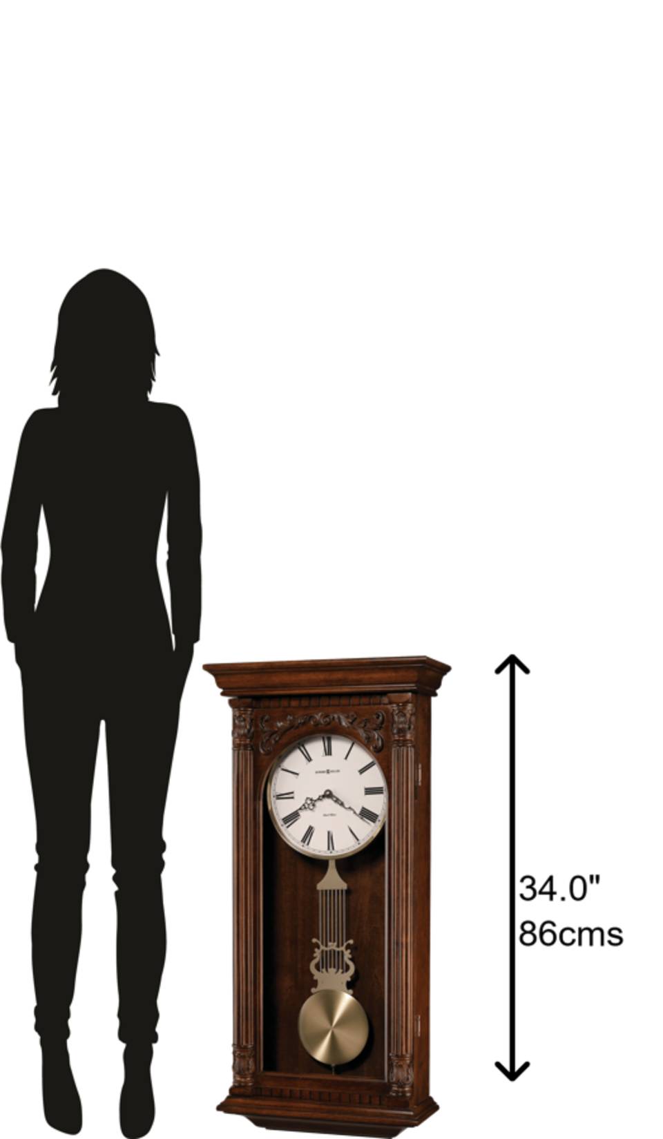 Old-World Elegance: At a glance, it’s difficult to resist the outward beauty and timeless appeal of this antique wall clock. It’s finished in Handsome Cherry on select hardwoods and veneers and features a distinctive decorative overlay that crowns the arched glass. Eye-catching dentil molding borders the pediment and base. This traditional wall clock with a pendulum is the perfect addition to any classically designed space.