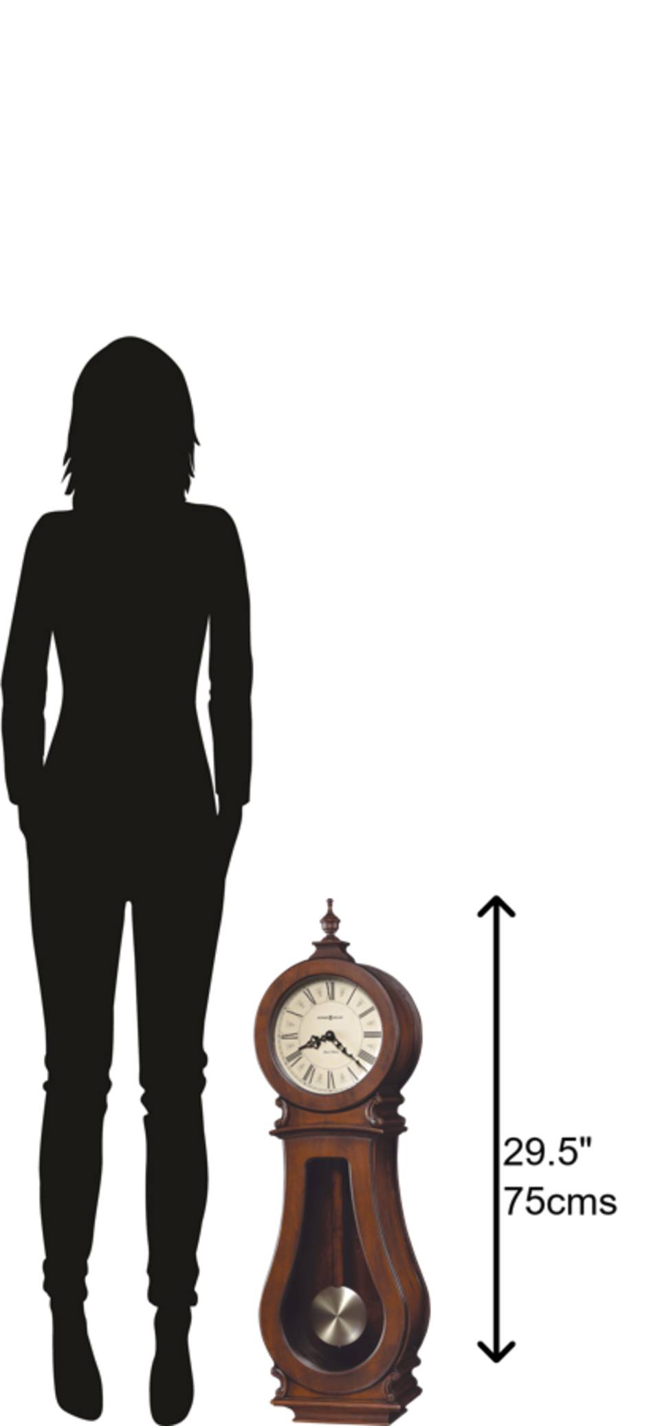 Attention to Detail: Featuring Tuscany Cherry hardwood, this gently curved clock is a study in precision. The uniquely carved accents along the sides, along with the turned urn finial, lend it unparalleled style. The dial features an aged, old-world finish that allows the black Roman numerals and decorative black hands to stand out. Below is a wooden stick pendulum that shines thanks to its antique brass-finished spun bob.