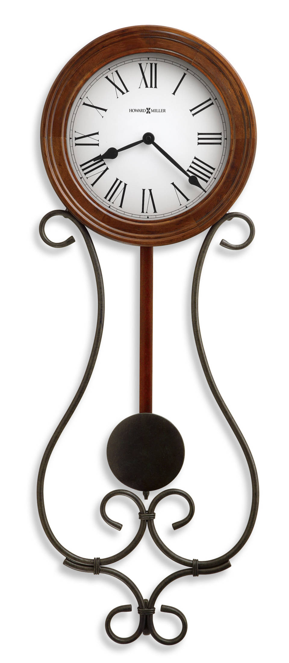 DURABLE: This indoor modern clock has a sturdy metal frame to relieve stress in a busy household. Display it in your kitchen, office, bathroom, bedroom, living room, and more with a featured warm antique-gray pendulum bob suspended from a cherry-finished wood stick.