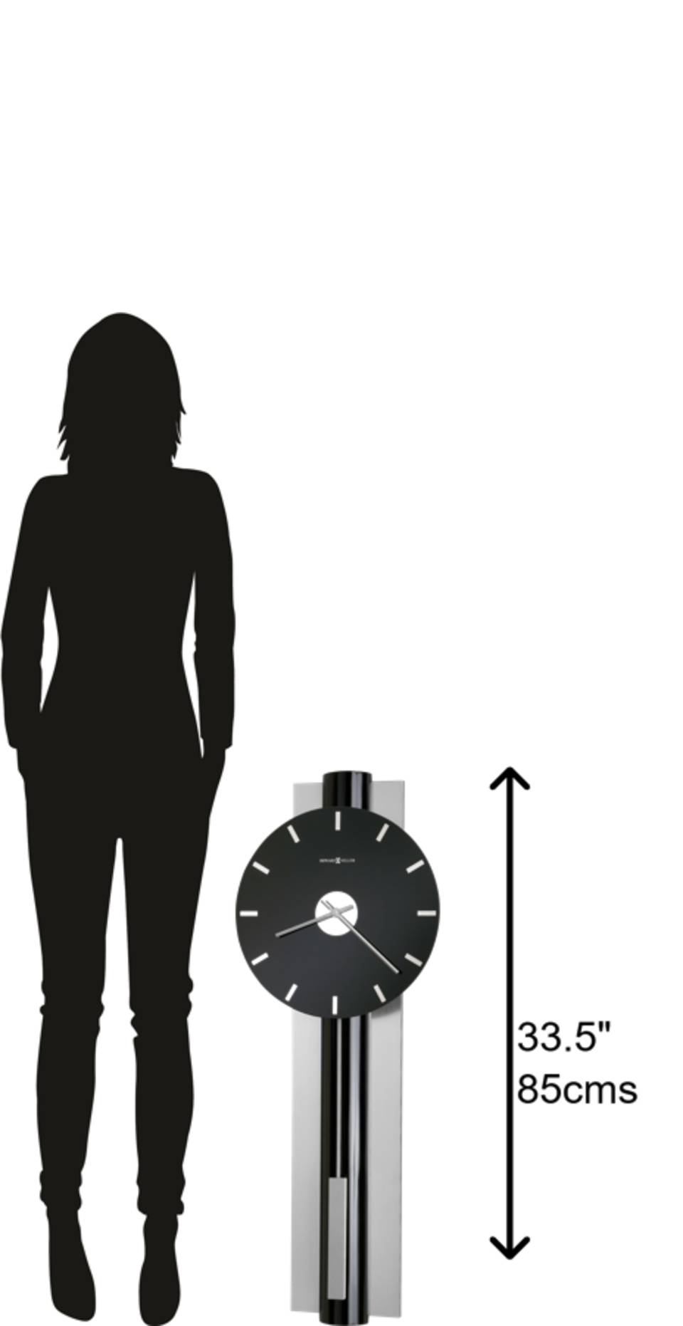 Modern Style: This eye-catching wall clock has contrasting black and silver tones for modern elegance. It’s enhanced with a rectangular pendulum, which has a brushed nickel finish, and it has a sleek appearance that complements any room.