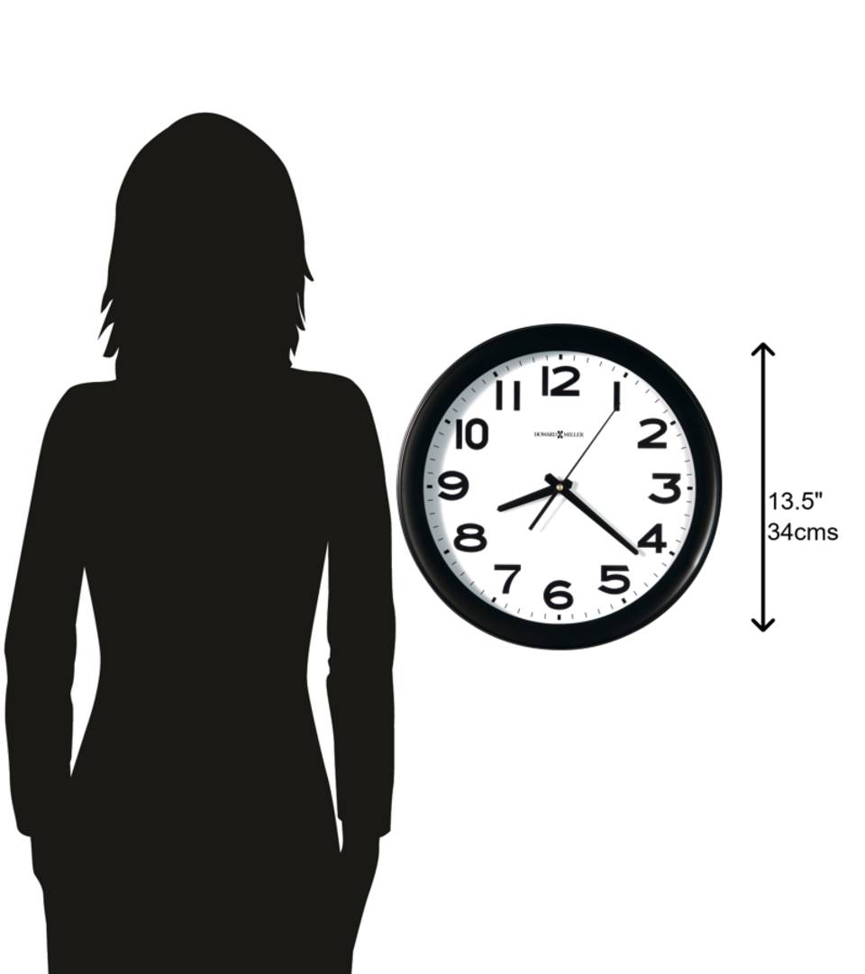 Enhance any room with the Kenwick round wall clock from Howard Miller. It has a schoolhouse-inspired design to impart a vintage look to your space, along with bold black numerals against a bright white dial for easy readability.