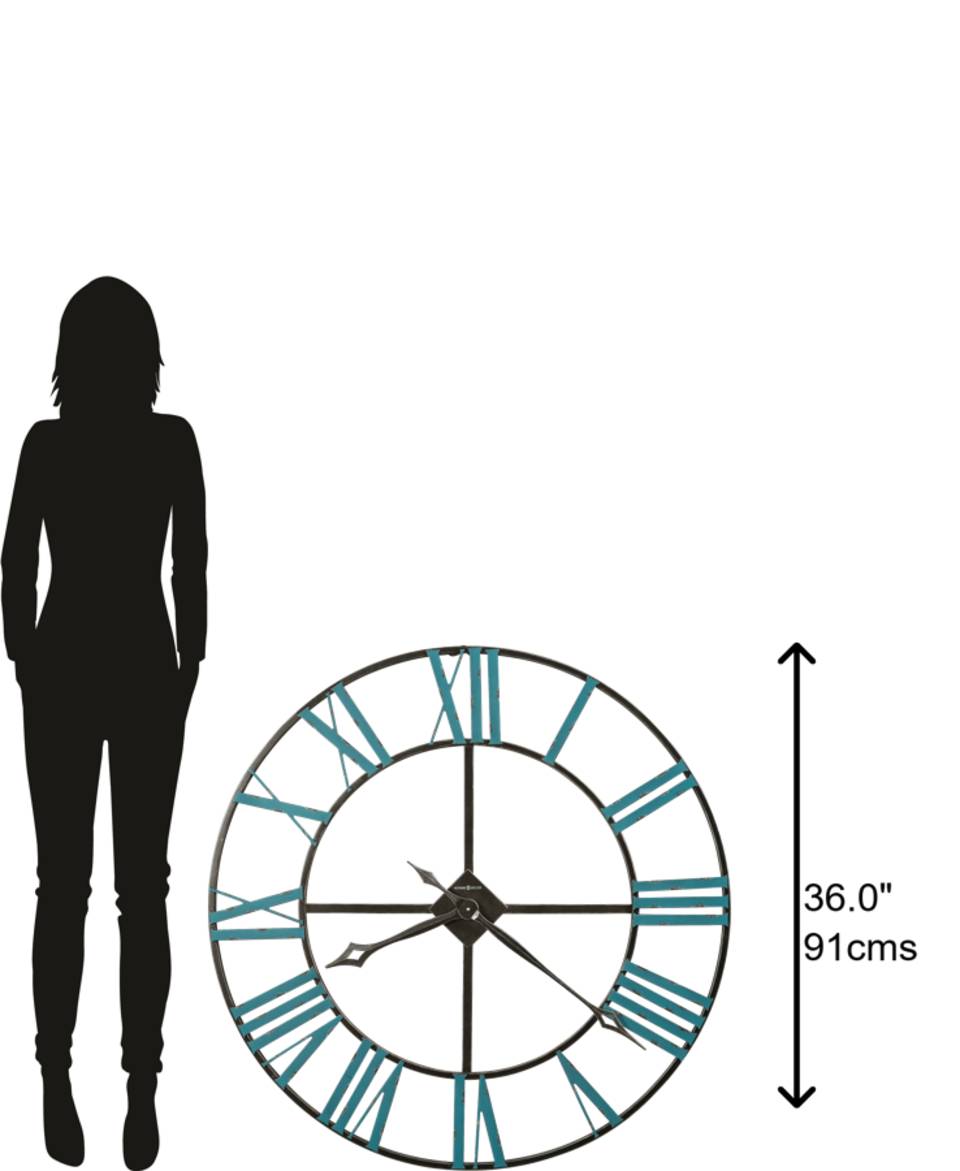 Hang the St. Clair oversized wall clock in any room for elegant style. This Howard Miller timepiece has a breezy, open design with marine blue Roman numerals to enhance your home.