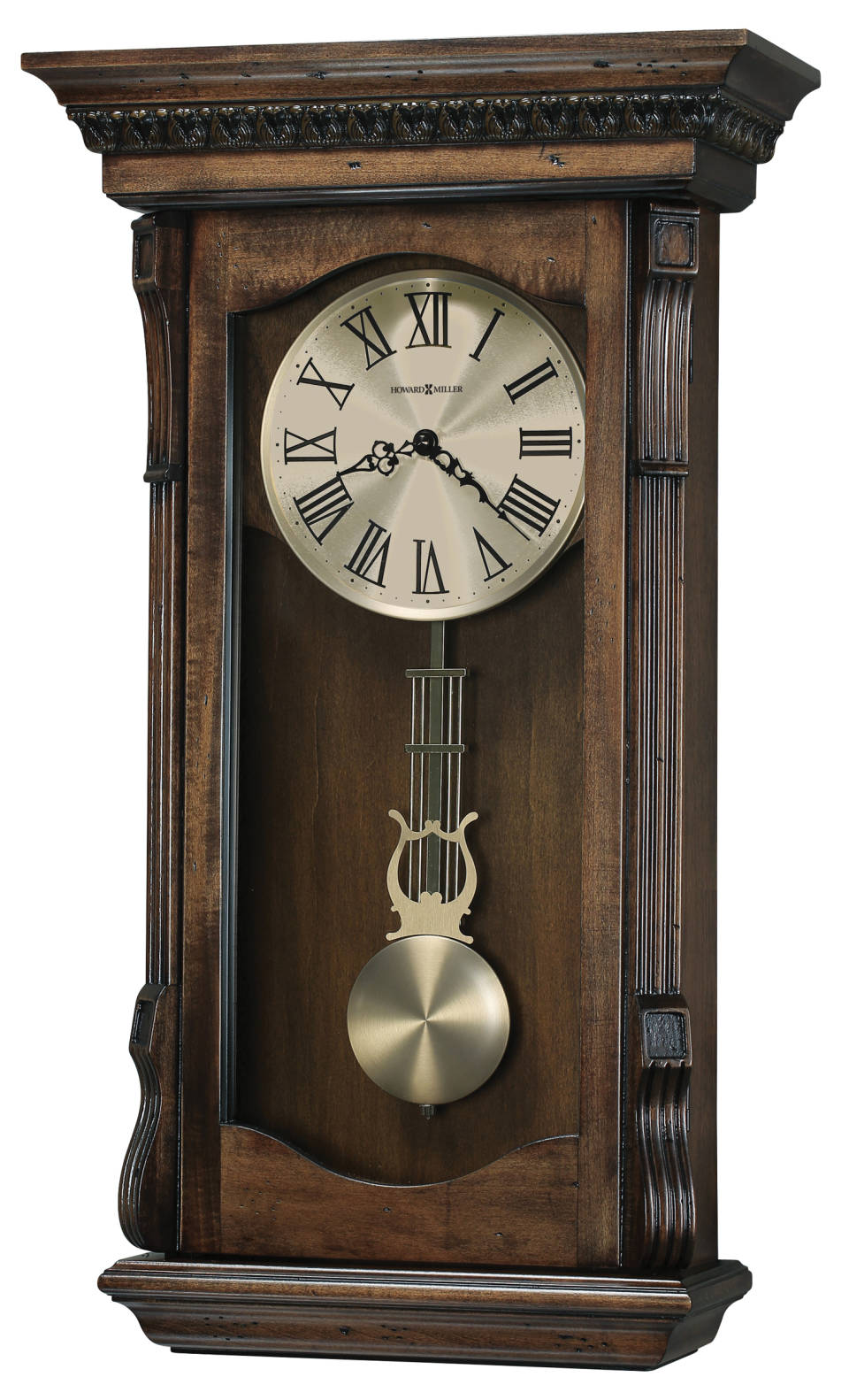 Antique-Inspired Style: The door of this wall clock is framed with columns and carved Acanthus moldings for heirloom-inspired style. Its multitiered flat top further enhances this clock’s upscale appearance.