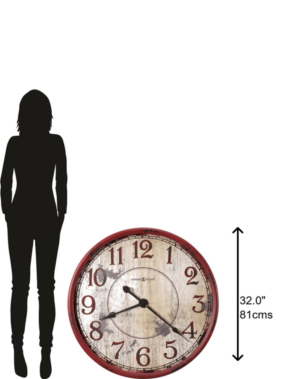 Antique Red Finish: One of the most notable design features of this clock is the bold red coloring of the frame. This oversized wall clock features a highly-distressed antique red finish that creates an aged appearance. The end result is a bold design that is eye-catching and unique.